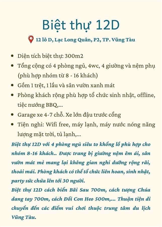 Địa chỉ: 12D Lạc Long Quân, Vũng Tàu