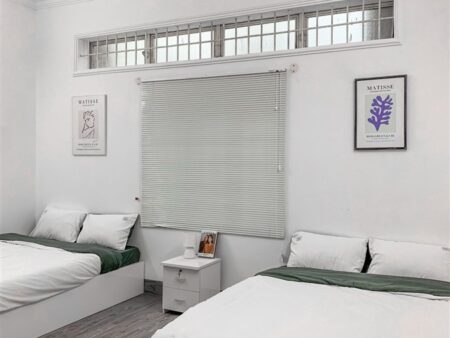 Tọa lạc tại số 42 Phó Đức Chính, TP. Vũng Tàu, Nhà phố 42 Phó Đức Chính là lựa chọn hoàn hảo cho gia đình hoặc nhóm bạn muốn nghỉ dưỡng tiện nghi, gần biển. Căn nhà có 4 phòng ngủ, 7 giường, 2 nệm phụ và 5 phòng vệ sinh, mang đến không gian rộng rãi và thoải mái cho nhóm từ 14–18 khách. Chỉ cách biển 300m, du khách có thể dễ dàng đi bộ ra bãi tắm và tận hưởng các hoạt động vui chơi.