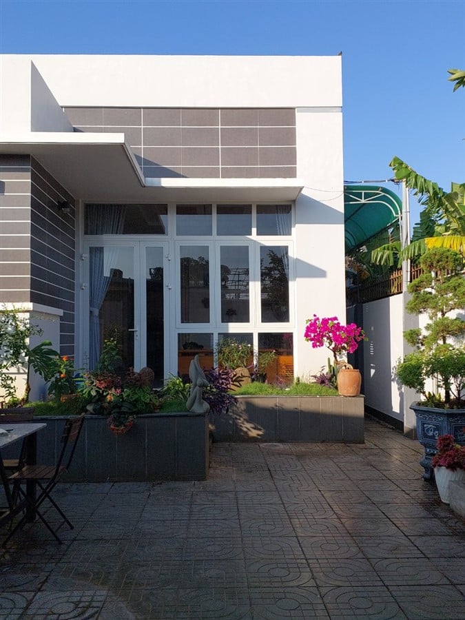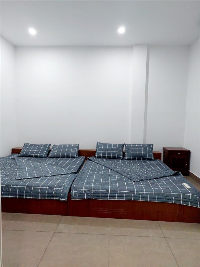 Nhà phố gồm 4 phòng ngủ với 5 giường và 4 nệm phụ, sức chứa tối đa lên tới 20 khách. Nhà được thiết kế không lầu, với nội thất hiện đại, bếp đầy đủ dụng cụ, nồi lẩu, chén bát và gia vị cơ bản, phục vụ nhu cầu nấu nướng cho nhóm đông. Sân vườn rộng rãi trồng nhiều cây ăn trái, kết hợp khu vực BBQ ngoài trời lý tưởng để tổ chức tiệc nướng, sinh hoạt nhóm hoặc thư giãn cùng gia đình.