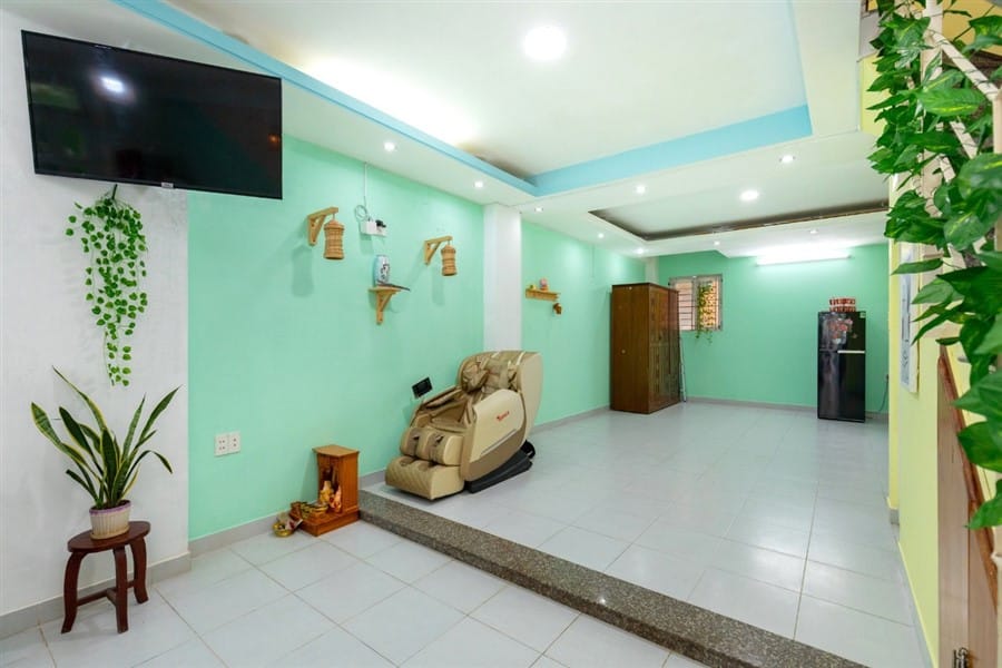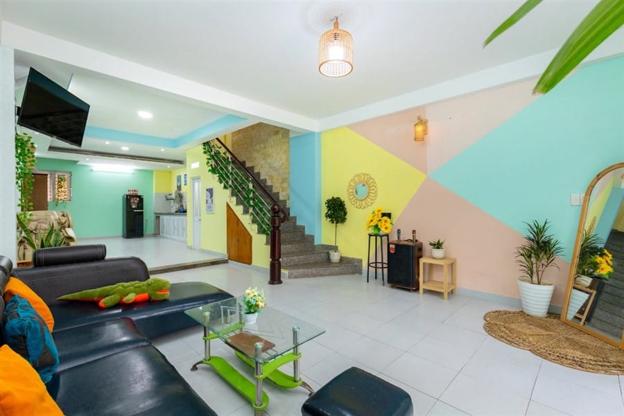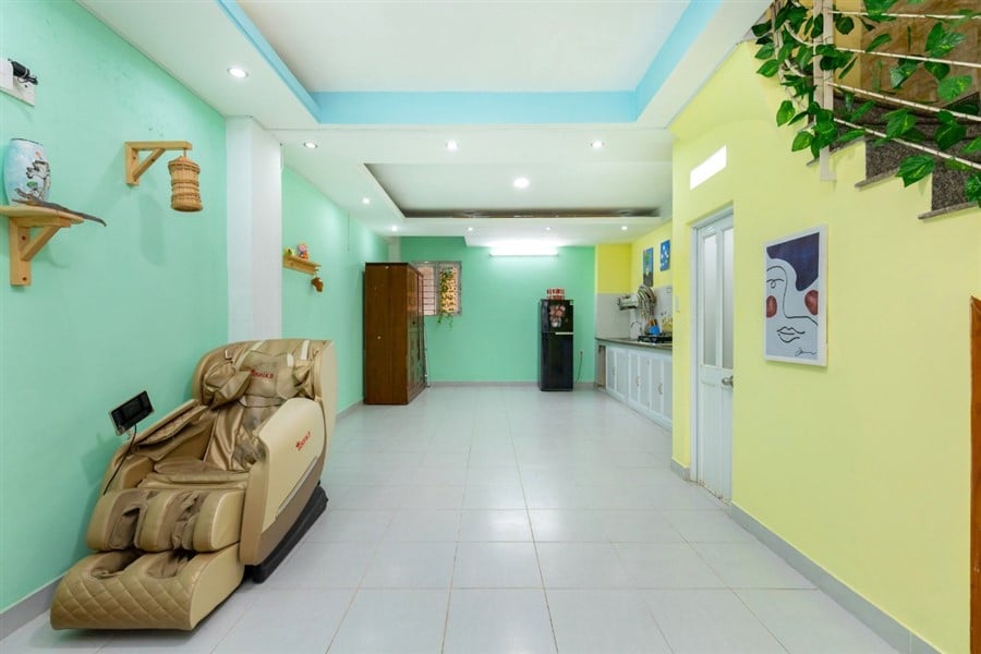 Ngoài không gian nghỉ ngơi, nhà phố 45/16C Thùy Vân còn trang bị dàn karaoke miễn phí, giúp các hoạt động giải trí, tiệc nướng nhóm hay sinh hoạt chung trở nên thú vị hơn. Không gian chung rộng rãi và thoáng đãng cùng sân ngoài trời thuận tiện cho các buổi tụ họp, trò chơi nhóm, hoặc các bữa tiệc nướng ngoài trời.