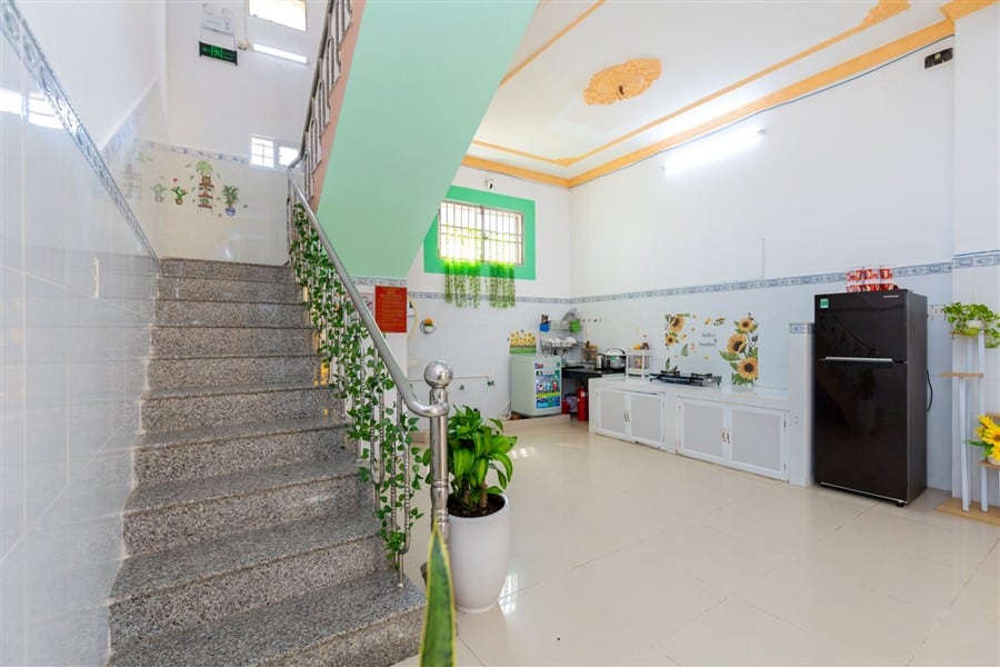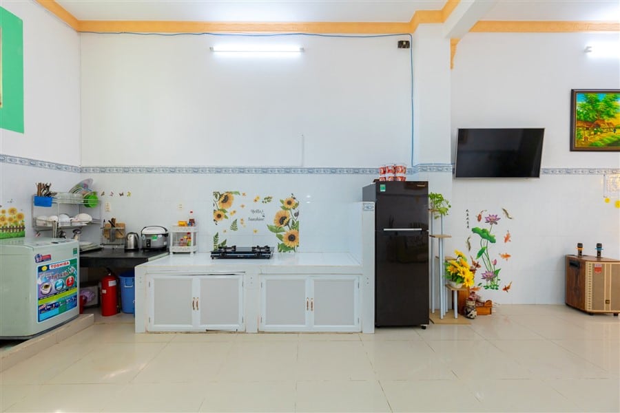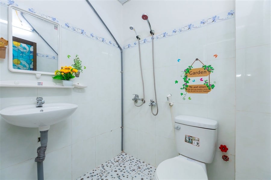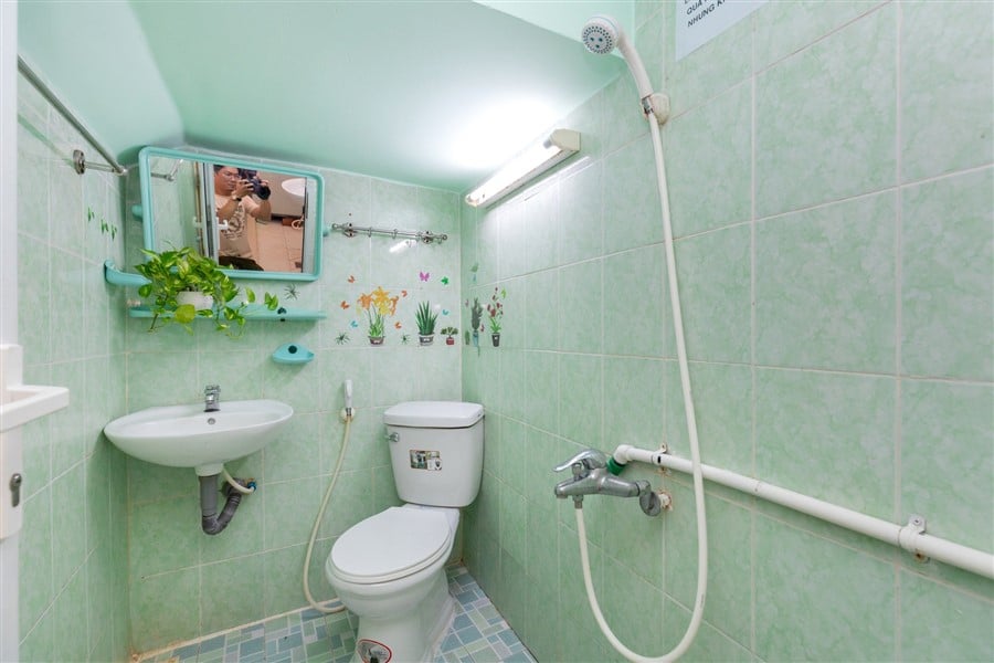 Trang bị đầy đủ tiện nghi: WC riêng từng phòng, loa karaoke, khu sinh hoạt chung