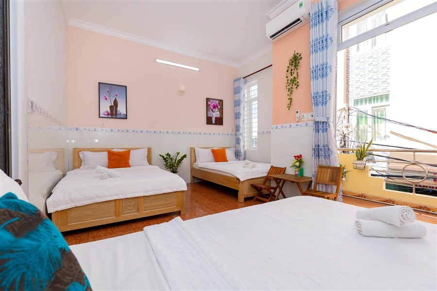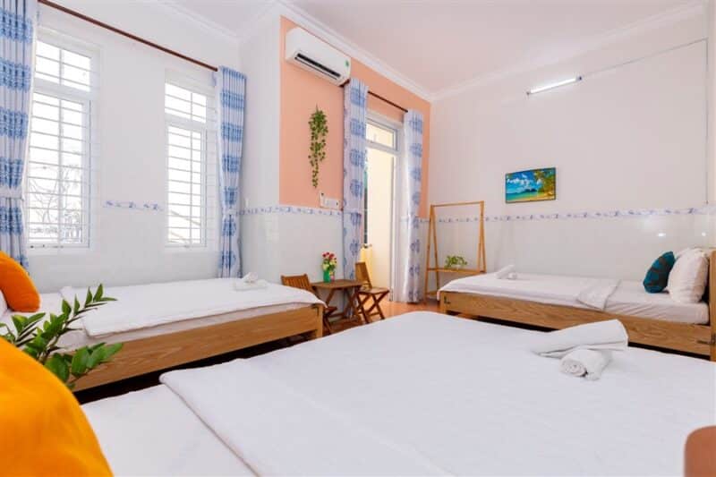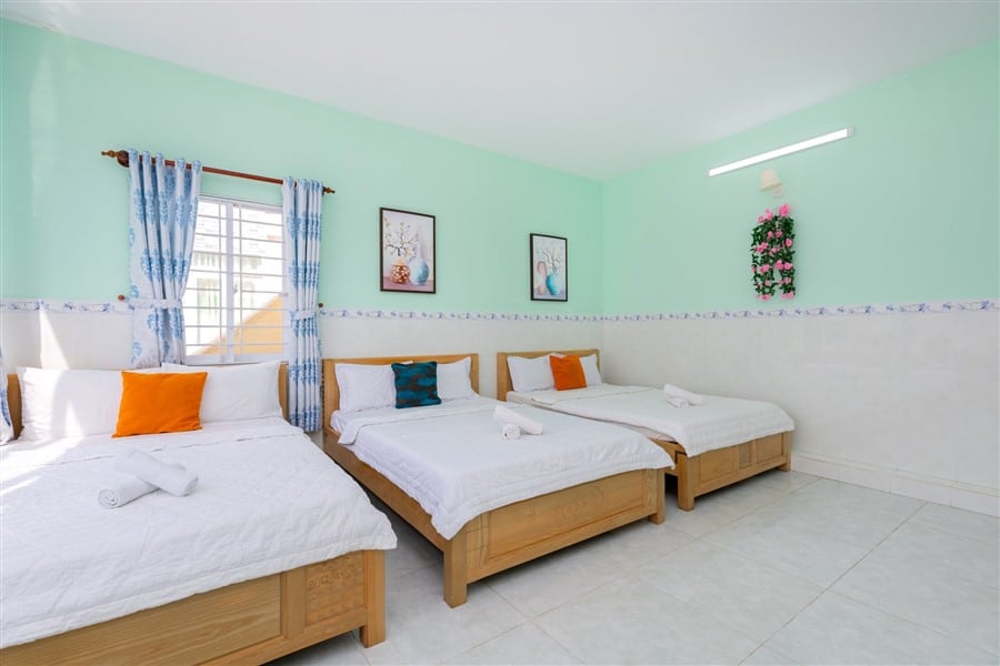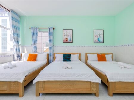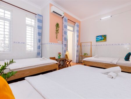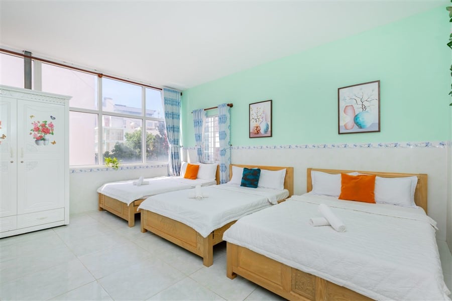 Căn nhà phố rộng rãi với 4 phòng ngủ, 8 giường và 4 nệm phụ, sức chứa tối đa lên tới 20 khách, đảm bảo cho nhóm đông có một không gian nghỉ dưỡng thoải mái. Mỗi phòng đều được trang bị WC riêng và nội thất tiện nghi, mang đến trải nghiệm nghỉ dưỡng tiện lợi và thoải mái như ở chính ngôi nhà của bạn.