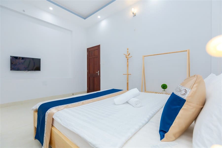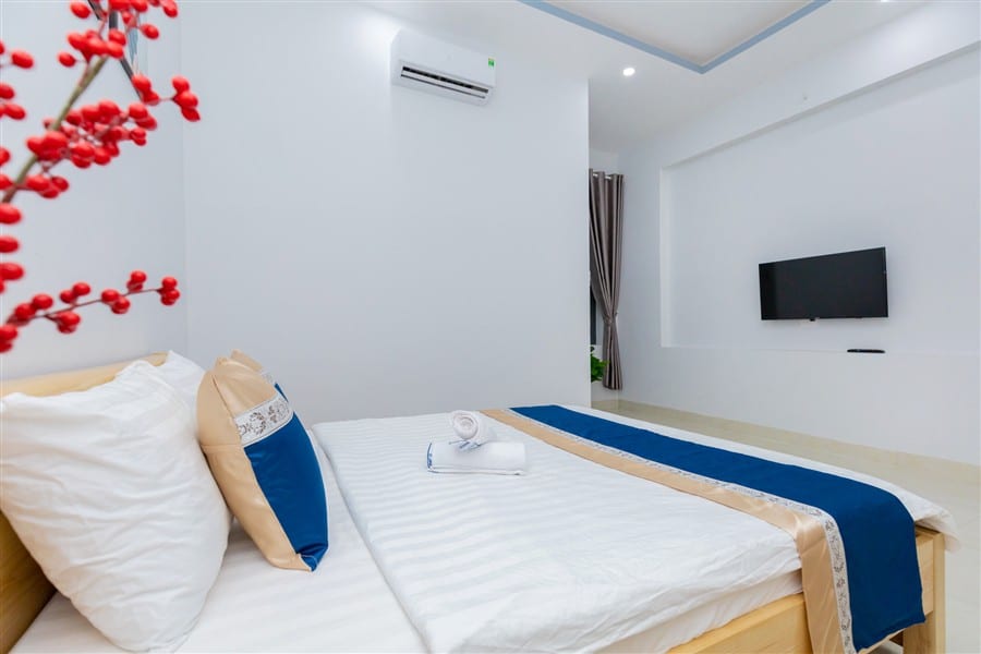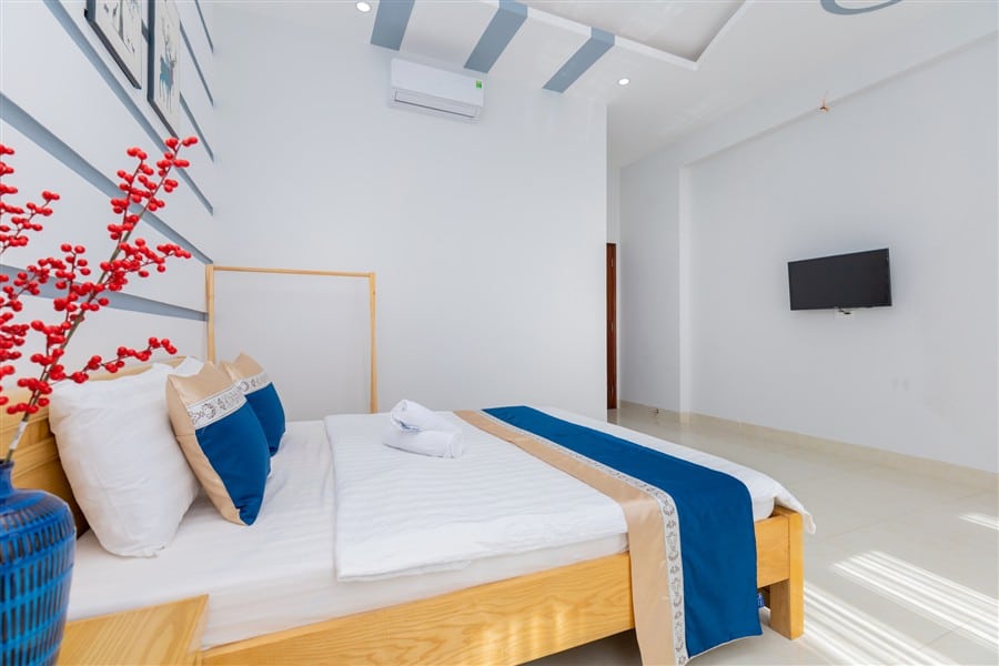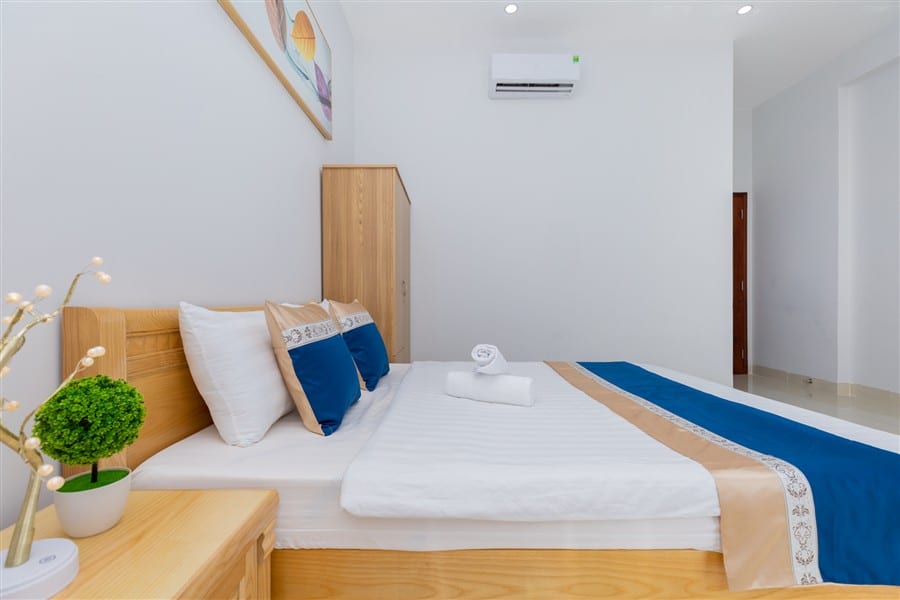 Phòng ngủ trang bị đầy đủ tiện nghi cơ bản (kem đánh răng, bàn chải, dầu gội, máy lạnh, máy nước nóng)