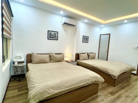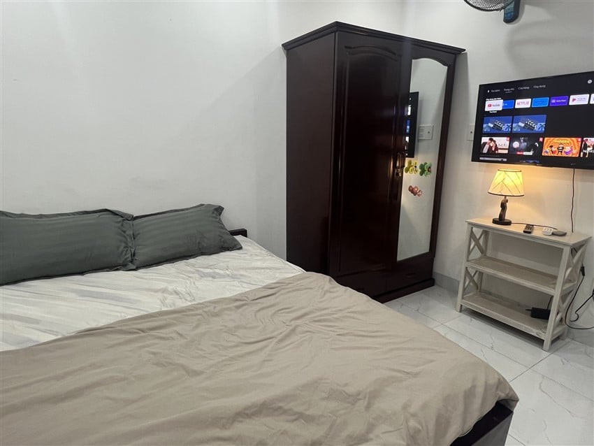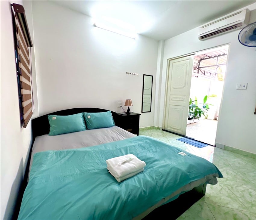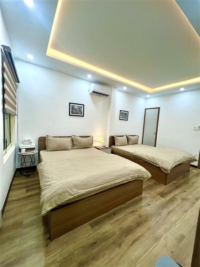 Căn nhà phố gồm 4 phòng ngủ với 4 giường lớn (1,8m x 2m) và 2 nệm phụ, sức chứa tối đa lên đến 18 khách, đảm bảo nhóm đông có một không gian nghỉ dưỡng thoải mái. Nhà bếp đầy đủ tiện nghi với bếp điện, nồi cơm điện, máy giặt, máy sấy tóc và dụng cụ nấu ăn cơ bản, thuận tiện để chuẩn bị bữa ăn gia đình hoặc tiệc nhỏ. 4 WC nước nóng lạnh riêng biệt, giúp việc sinh hoạt của nhóm khách trở nên dễ dàng và tiện lợi.