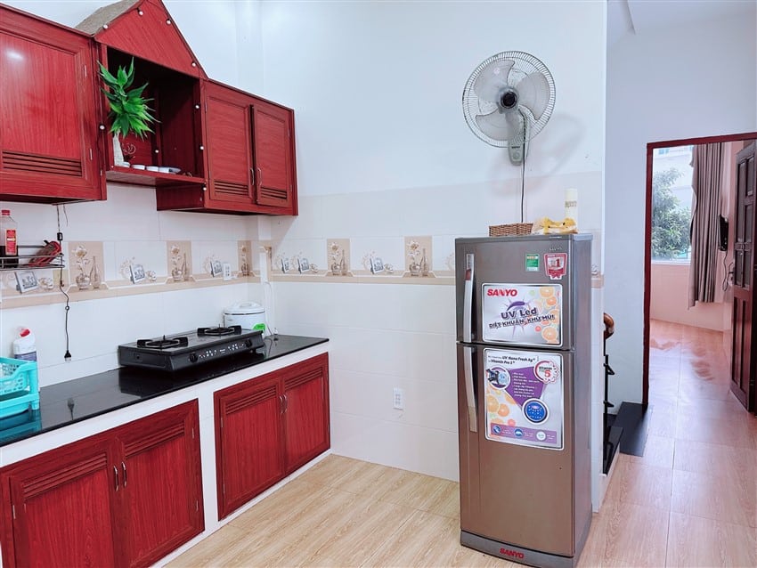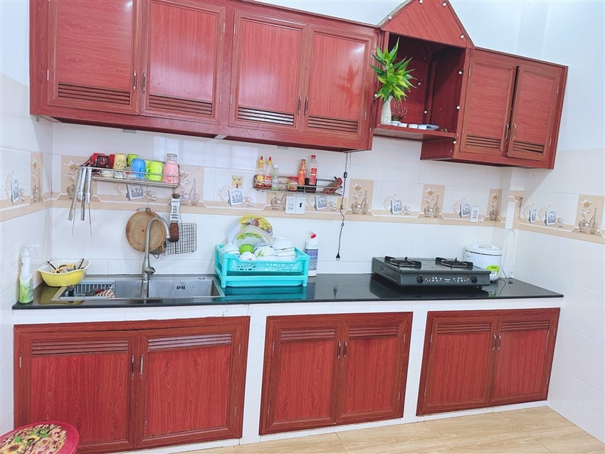 ✅ Khu bếp đầy đủ dụng cụ nấu ăn, gia vị cơ bản