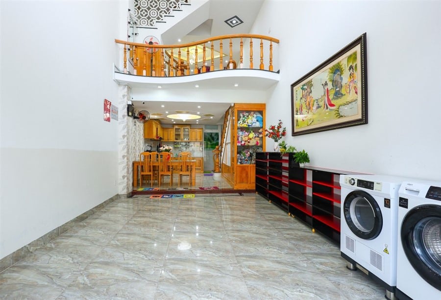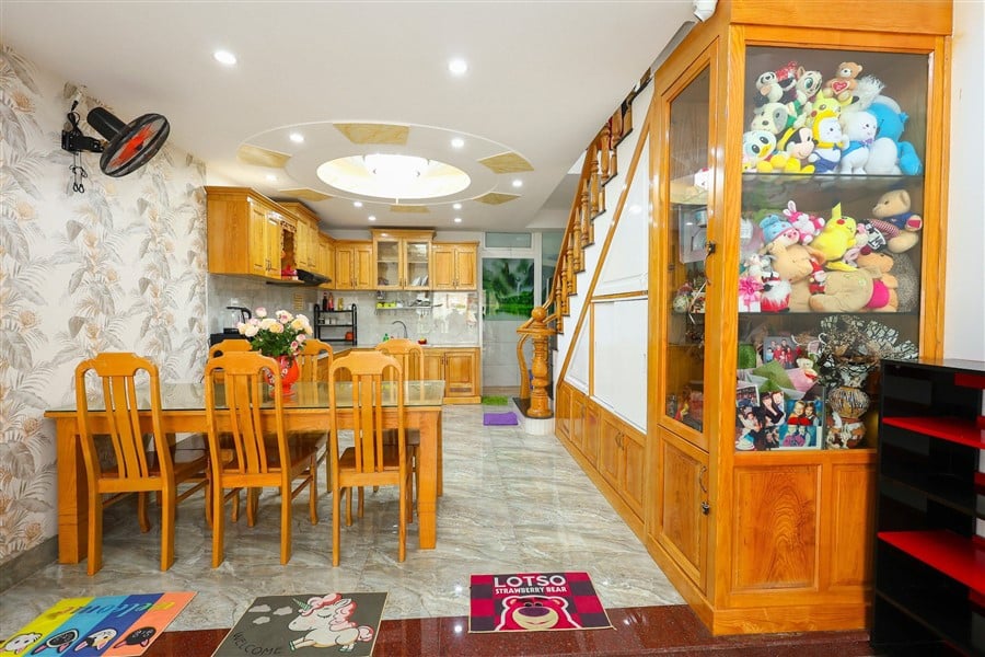 Ngoài ra, nhà phố 95/7 Phan Chu Trinh có chỗ để xe ô tô 16 chỗ trước nhà, thuận tiện cho việc di chuyển và đưa đón khách. Không gian rộng rãi cùng các tiện ích như khu vực karaoke, nệm phụ (nếu cần) giúp cả nhóm vừa vui chơi, vừa thư giãn thoải mái. Vị trí nhà phố gần các quán ăn, quán cafe, siêu thị, tạo điều kiện thuận lợi để khám phá và thưởng thức ẩm thực địa phương.