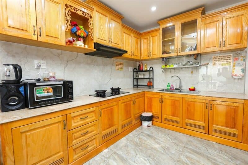 ✅ Bếp đầy đủ dụng cụ nấu ăn và gia vị cơ bản