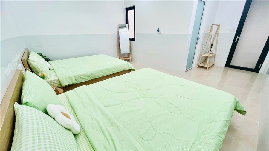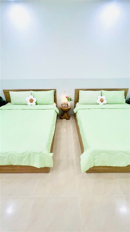 Căn nhà phố gồm 1 trệt và 2 lầu, được bố trí 7 phòng ngủ, 10 giường và 3 nệm phụ, sức chứa tối đa lên tới 30 khách. Mỗi phòng đều có WC riêng, bao gồm 4 phòng đơn và 3 phòng đôi, mang lại trải nghiệm nghỉ dưỡng thoải mái và tiện nghi như ở chính ngôi nhà của bạn. Tầng trệt có phòng đôi, phòng khách và bếp đầy đủ tiện nghi, tầng 1 và 2 gồm các phòng đơn và phòng đôi, cùng sân thượng thoáng đãng, lý tưởng để thư giãn hoặc tổ chức các hoạt động ngoài trời.