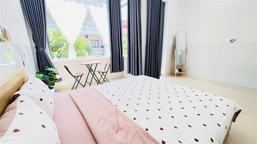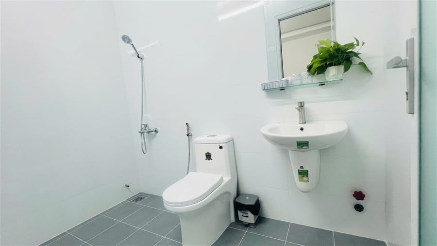 Trang bị đầy đủ tiện nghi: WC riêng, phòng khách, bếp, sân thượng