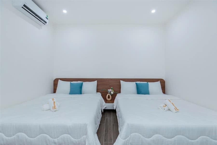 Tầng 1: 4 phòng 2 giường, mỗi phòng có toilet riêng