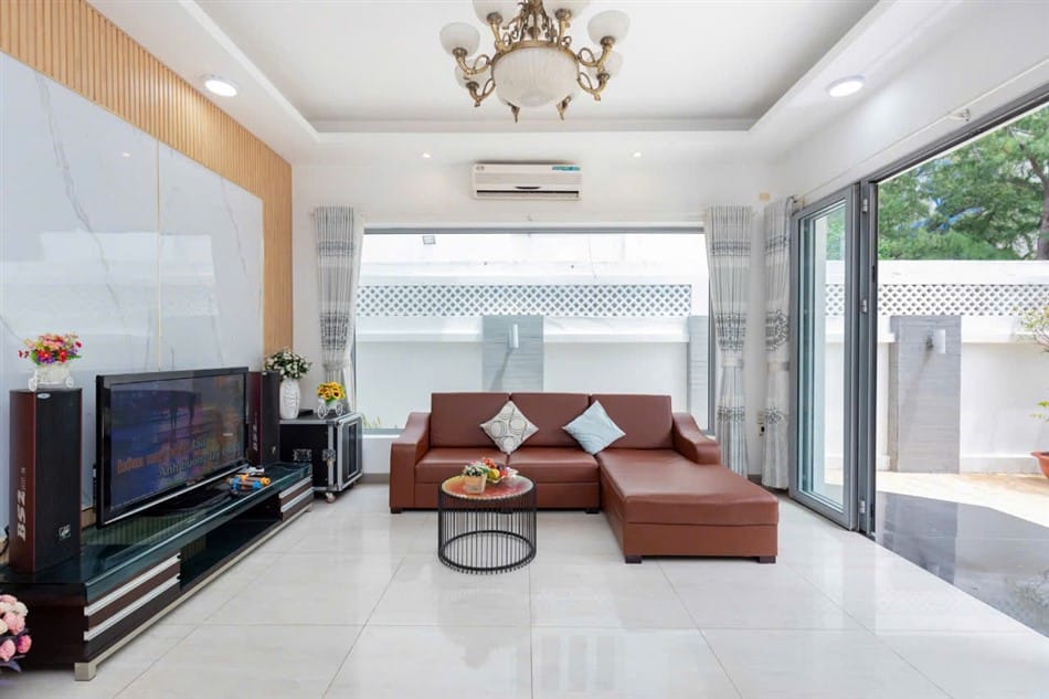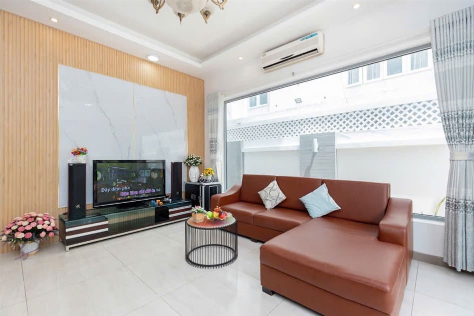 ✅ Phòng khách máy lạnh, không gian sinh hoạt chung thoáng mát, sang trọng