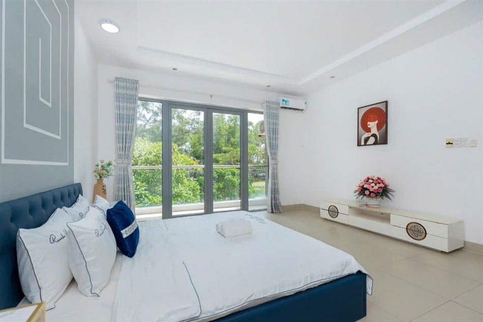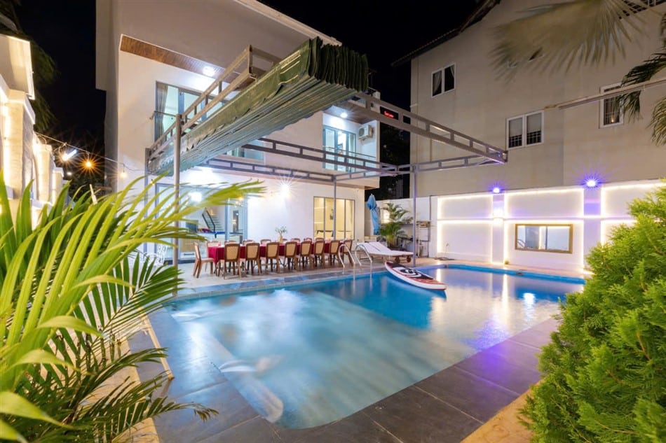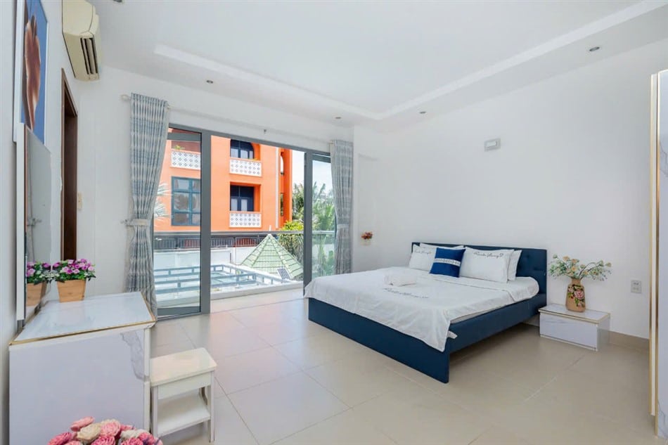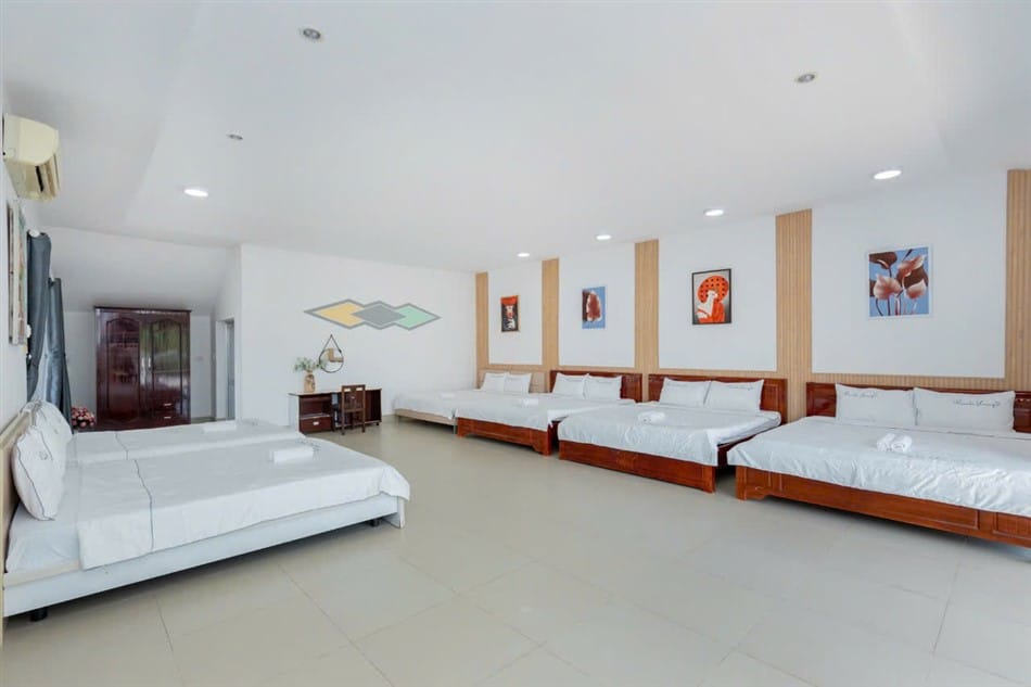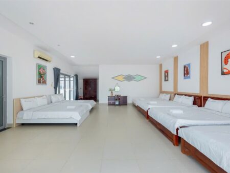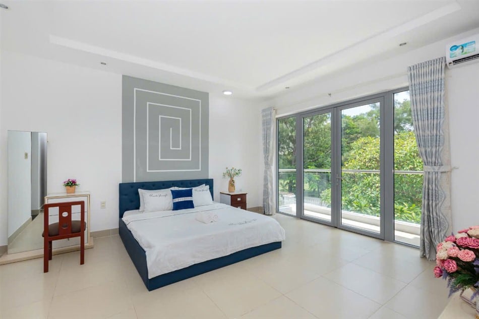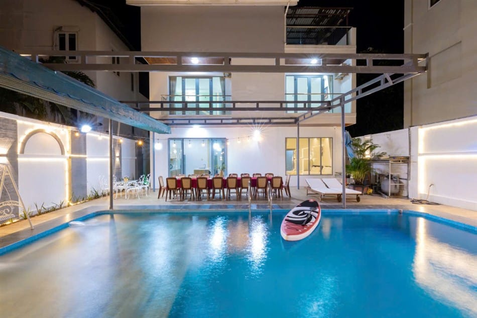 Với diện tích lớn, hồ bơi mái che 60m², 5 phòng ngủ – 12 giường – 7 nệm thêm – 6 toilet, cùng hàng loạt tiện ích như karaoke VIP, bàn bida, sân BBQ rộng, chỗ đậu xe cực lớn, villa là điểm đến lý tưởng cho gia đình, nhóm bạn hoặc công ty tổ chức team building.