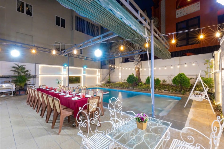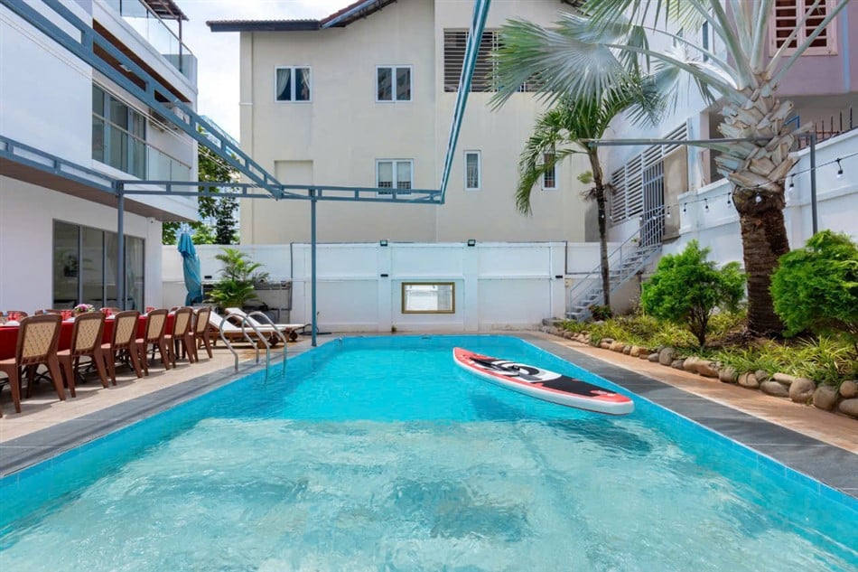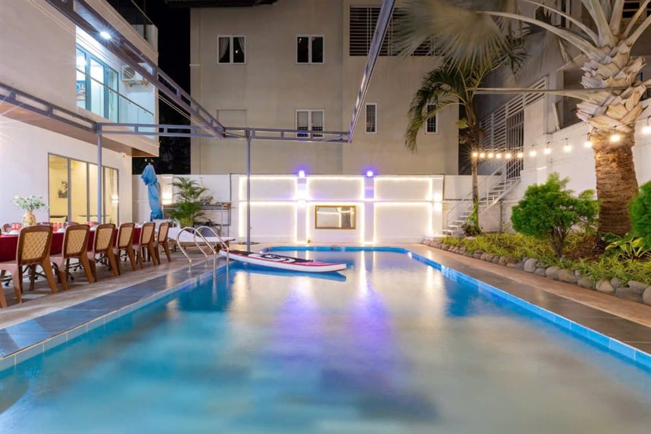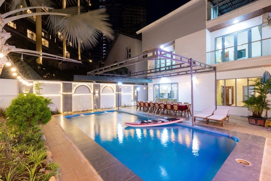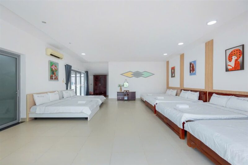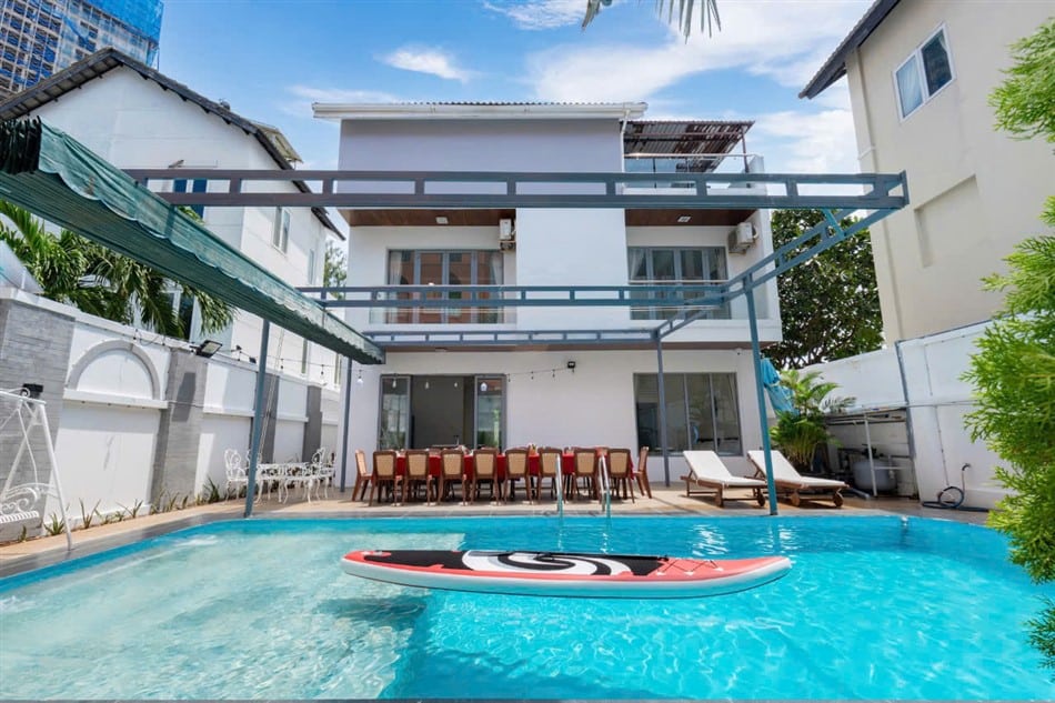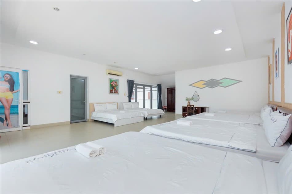 Với diện tích lớn, hồ bơi mái che 60m², 5 phòng ngủ – 12 giường – 7 nệm thêm – 6 toilet, cùng hàng loạt tiện ích như karaoke VIP, bàn bida, sân BBQ rộng, chỗ đậu xe cực lớn, villa là điểm đến lý tưởng cho gia đình, nhóm bạn hoặc công ty tổ chức team building.