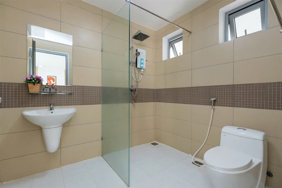 ✅ Hồ bơi lớn 60m², có khu riêng cho trẻ em và mái che chống nắng, chống mưa