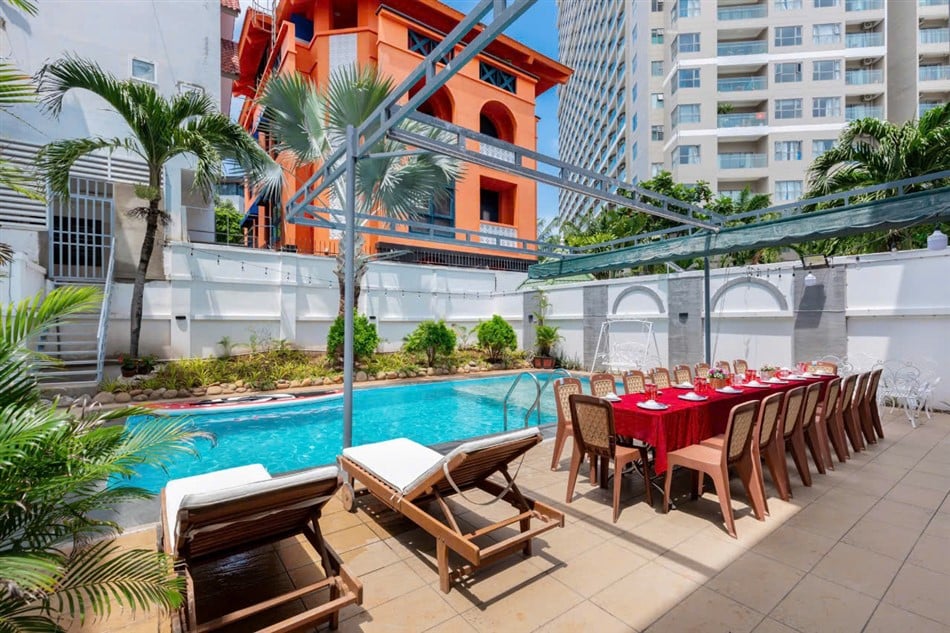 Villa 12 Khu Kim Minh – Villa Vũng Tàu có hồ bơi mái che, karaoke VIP, sân BBQ, sức chứa 30 khách, gần Bãi Sau