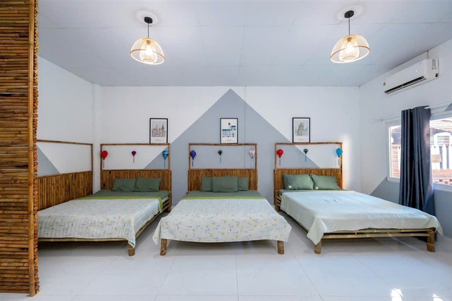 Villa bao gồm 3 phòng ngủ chính cùng 1 gác lửng, tổng cộng 7 giường và có thể sử dụng thêm nệm phụ khi cần, phù hợp sức chứa tiêu chuẩn 15 khách và tối đa 20 khách. Các phòng được bố trí gọn gàng, trang trí hiện đại và thoáng mát, đảm bảo không gian nghỉ ngơi thoải mái. 3 WC tiện nghi với vòi tắm nóng lạnh, dầu gội, sữa tắm và khăn tắm đáp ứng mọi nhu cầu sinh hoạt của khách lưu trú.