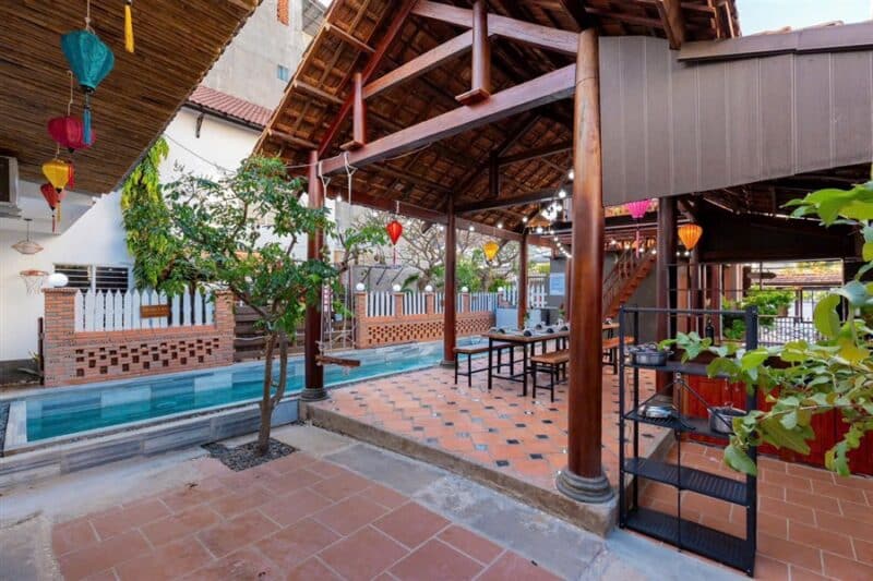 Điểm nhấn của Villa 15/3B Nguyễn Hiền là hồ bơi riêng 30m² được xử lý bằng công nghệ vi sinh hữu cơ, hoàn toàn không sử dụng Clo-Acid, an toàn cho da, tóc và sức khỏe của mọi thành viên trong gia đình. Bên cạnh hồ bơi là sân vườn rộng rãi và khu vực BBQ ngoài trời, trang bị bàn ghế lớn, lý tưởng tổ chức tiệc nướng hoặc gặp gỡ nhóm bạn.