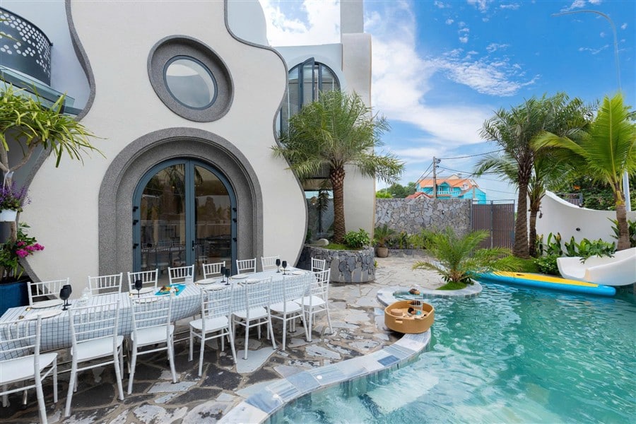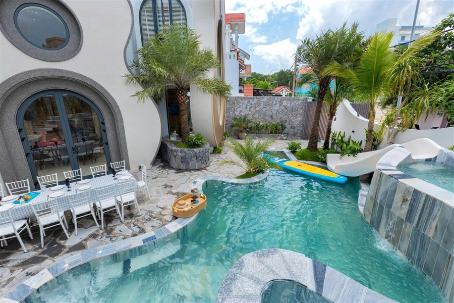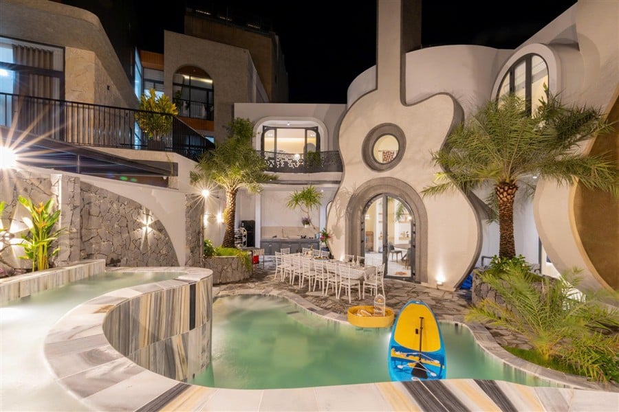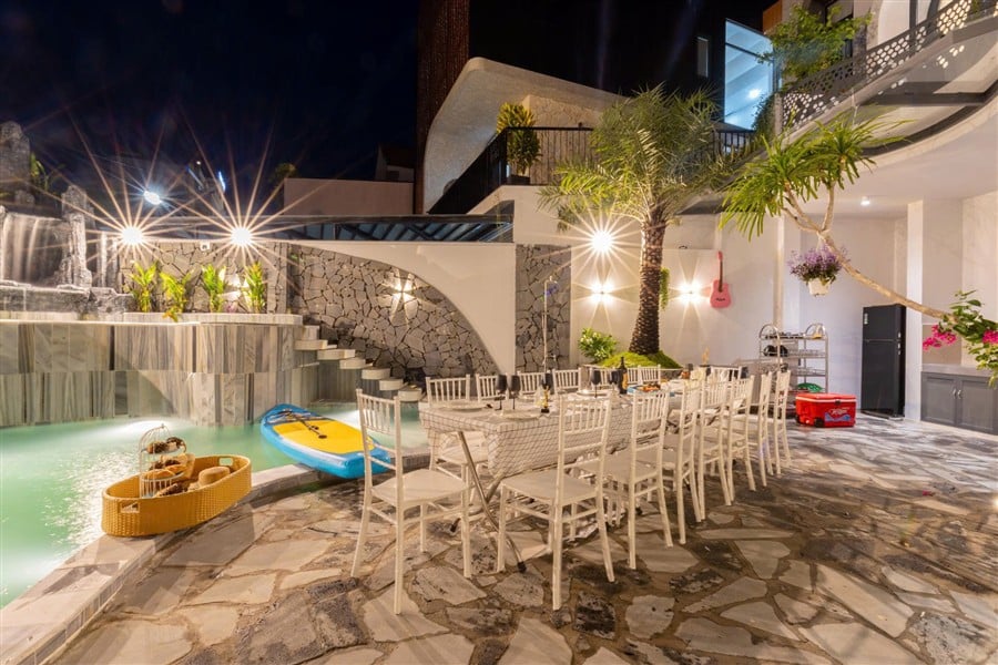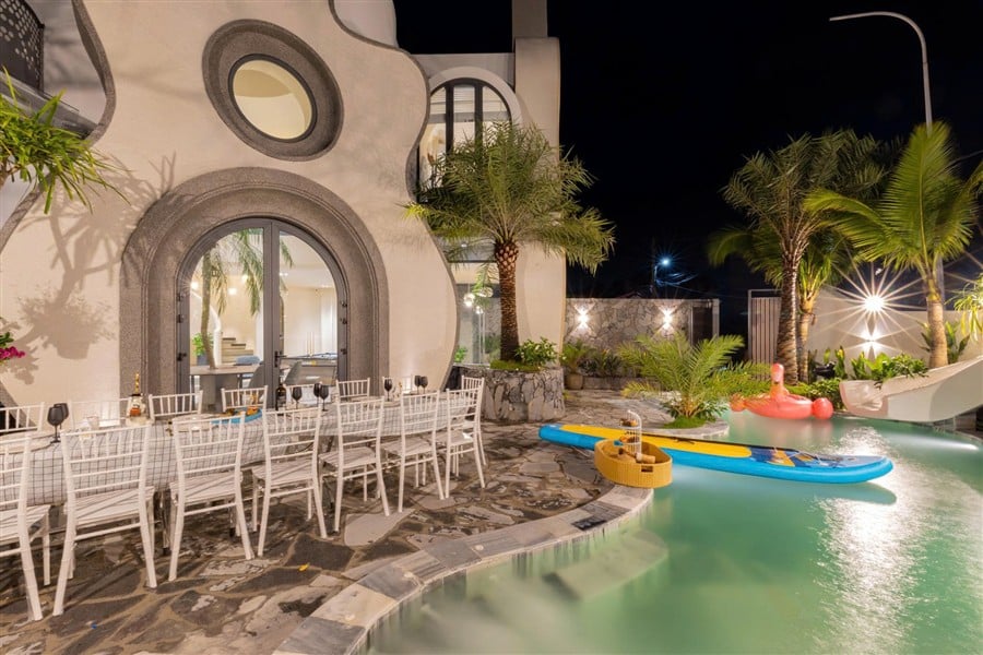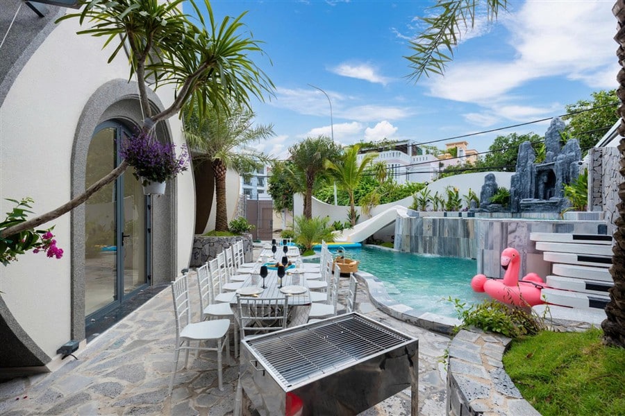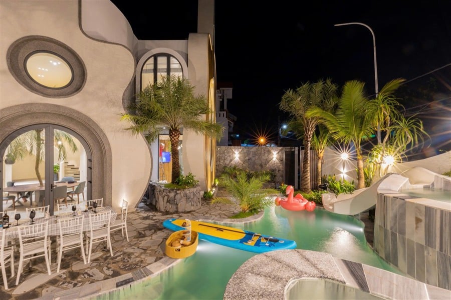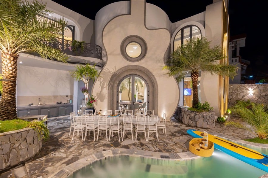 Với 6 phòng ngủ, 7 WC, hồ bơi lớn, sân BBQ, bàn bida, karaoke và nhiều góc check-in “triệu view”, Đàn Villa không chỉ là nơi nghỉ dưỡng mà còn là một tác phẩm kiến trúc nghệ thuật giữa lòng Vũng Tàu.