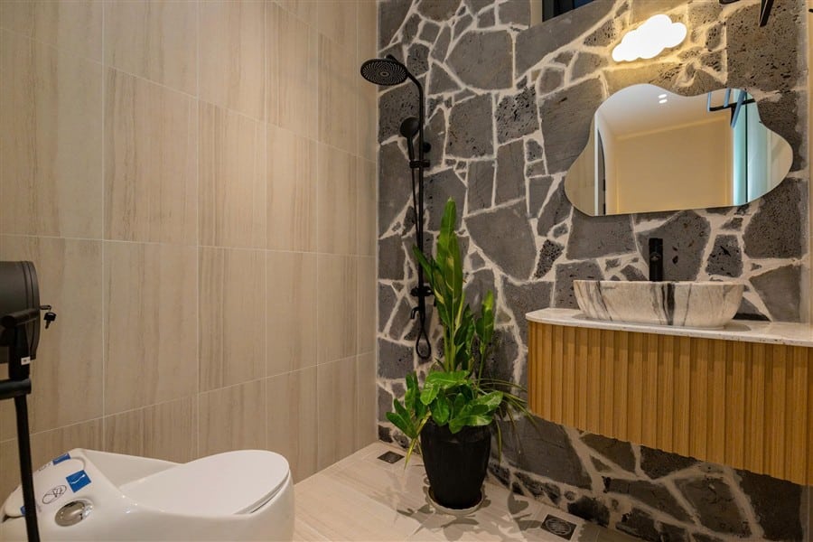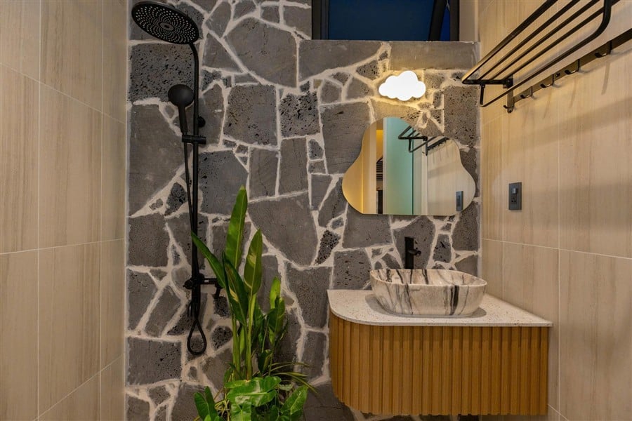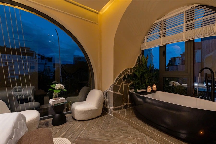 Phòng tắm ốc đảo xanh mát – có 2 phòng được thiết kế đặc biệt với bồn tắm thư giãn, hòa mình vào thiên nhiên.