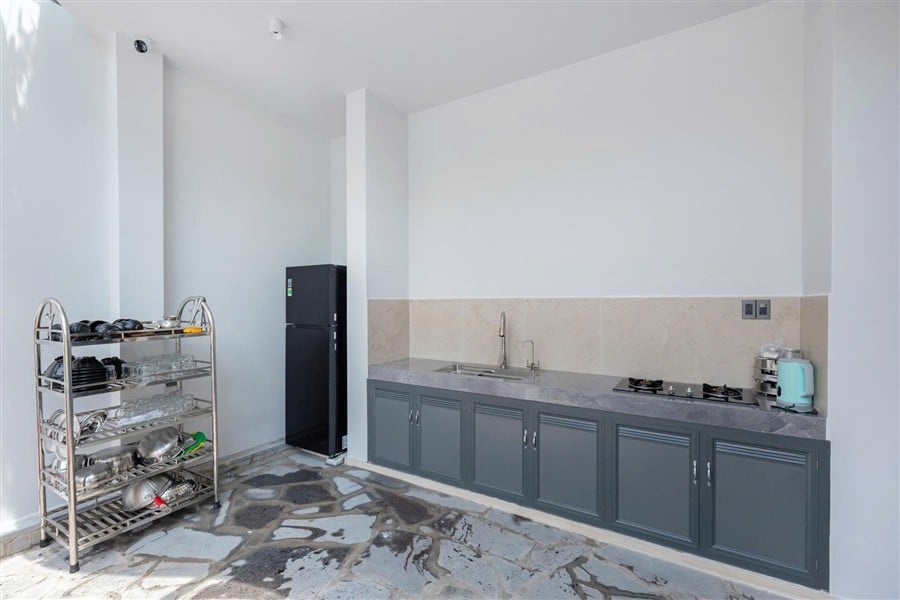 🥘 Bếp nấu ăn đầy đủ dụng cụ và gia vị cơ bản: muối, đường, bột ngọt (mỗi loại 2 lạng).
