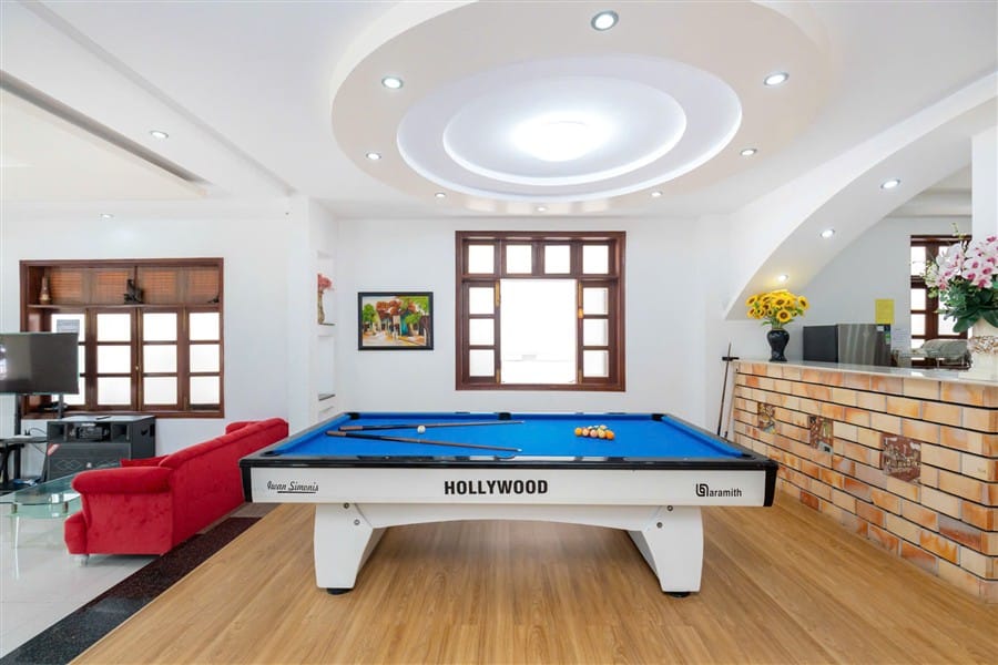 Khu giải trí: Phòng karaoke riêng cách âm, bàn bida, phòng khách rộng rãi, ghế massage, mang đến trải nghiệm vui chơi trọn vẹn.