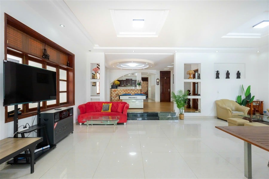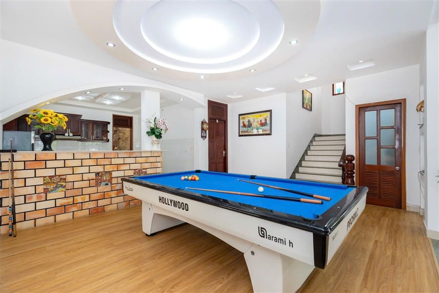 Tiện ích nổi bật: Hồ bơi 50m², sân BBQ ngoài trời, bàn bida, karaoke, bếp đầy đủ dụng cụ và gia vị cơ bản