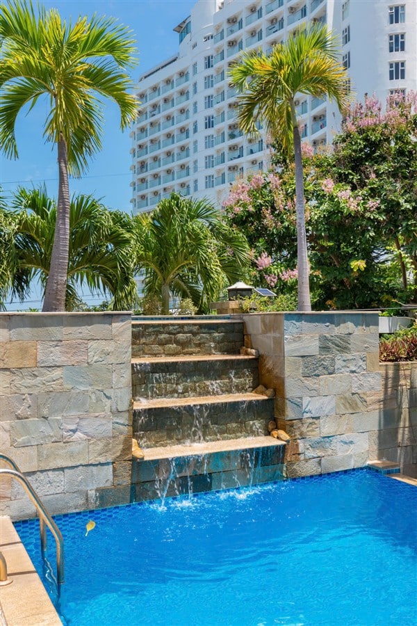 Hồ bơi 50m², khu vực riêng cho trẻ em, là nơi thư giãn, bơi lội và vui chơi an toàn cho mọi lứa tuổi.