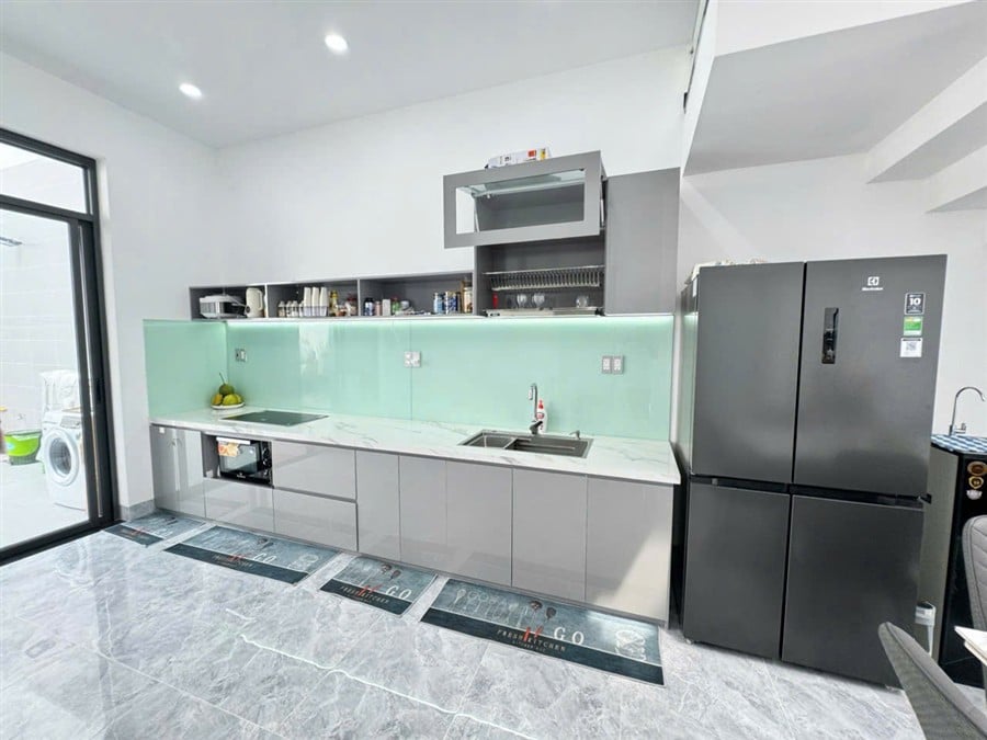 ✅ Khu bếp đầy đủ dụng cụ nấu nướng, bếp từ, lò vi sóng, tủ lạnh, gia vị cơ bản