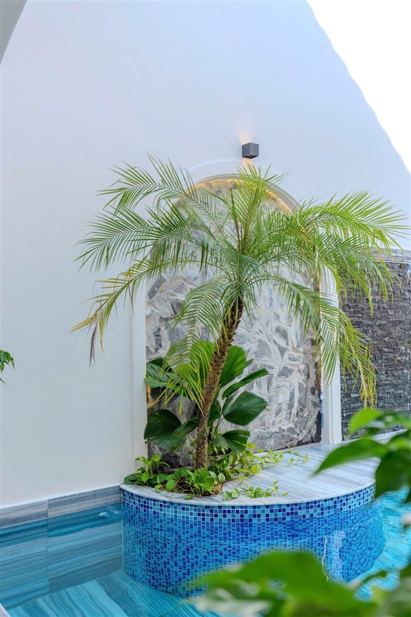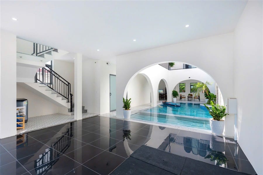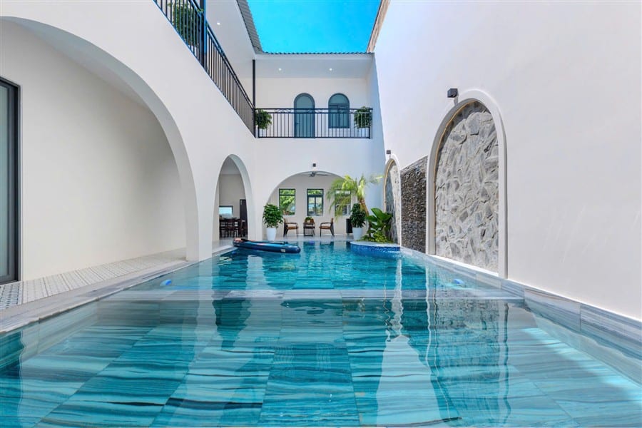 Hồ bơi 50m² với khu vực massage và hồ trẻ em, phù hợp cho mọi lứa tuổi