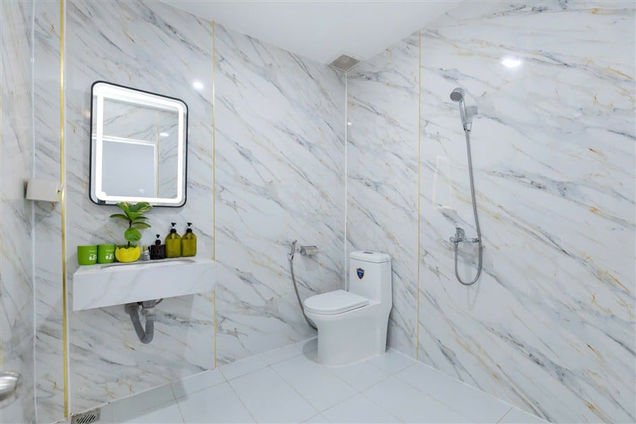 • Số lượng WC: 8 phòng vệ sinh, có nước nóng năng lượng mặt trời