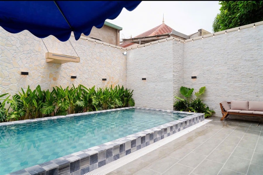 Hồ bơi rộng 40m², khu vực thư giãn ngoài trời