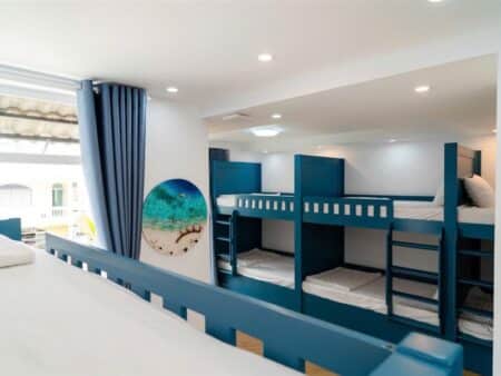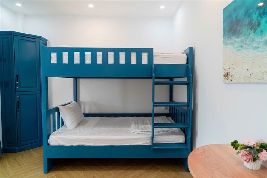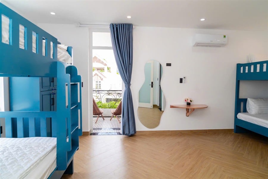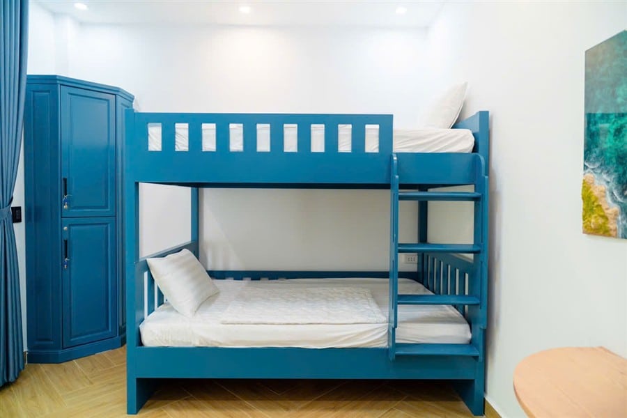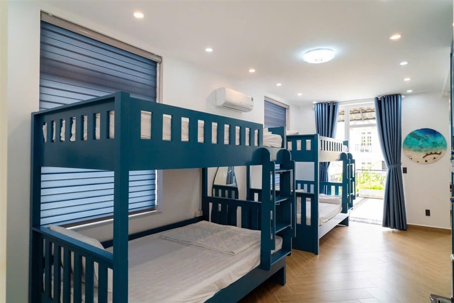 - Tầng 2 : Phòng 4 : 5 giường tầng 1,2m ( 2 wc trong ) Phòng 5 : giường 1,6m ( wc trong ) Phòng 6 : giường 1,8m ( wc trong )