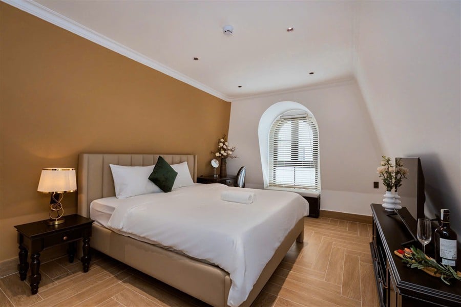 6 phòng ngủ rộng rãi, mỗi phòng đều có cửa sổ thoáng mát và WC riêng