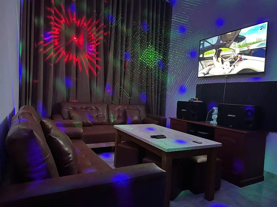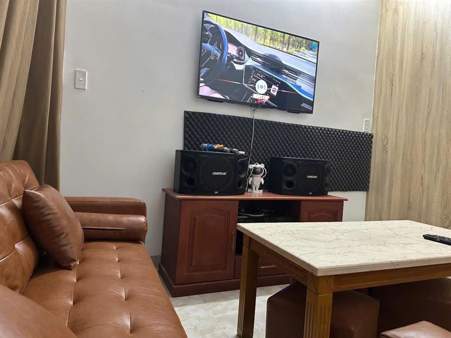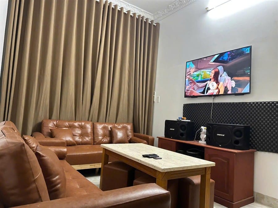 ✅ Phòng khách máy lạnh, sofa sang trọng, TV màn hình lớn