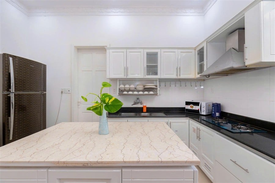 ✅ Nhà bếp đầy đủ dụng cụ: bếp gas, lò nướng BBQ, nồi, chén dĩa, gia vị cơ bản