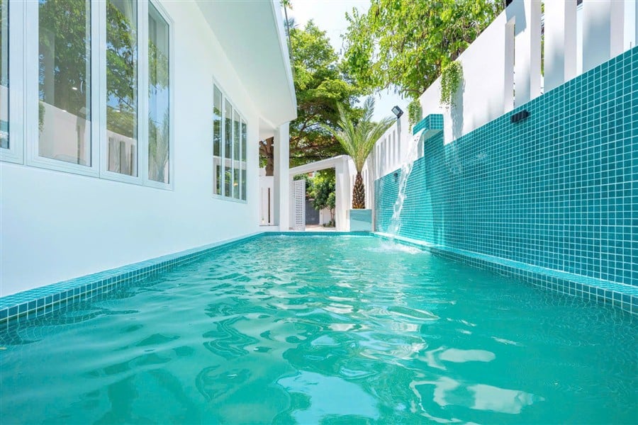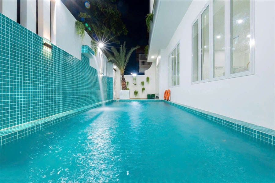 Thiết kế giữa khuôn viên sân, phù hợp tổ chức tiệc hồ bơi, chụp ảnh check-in.