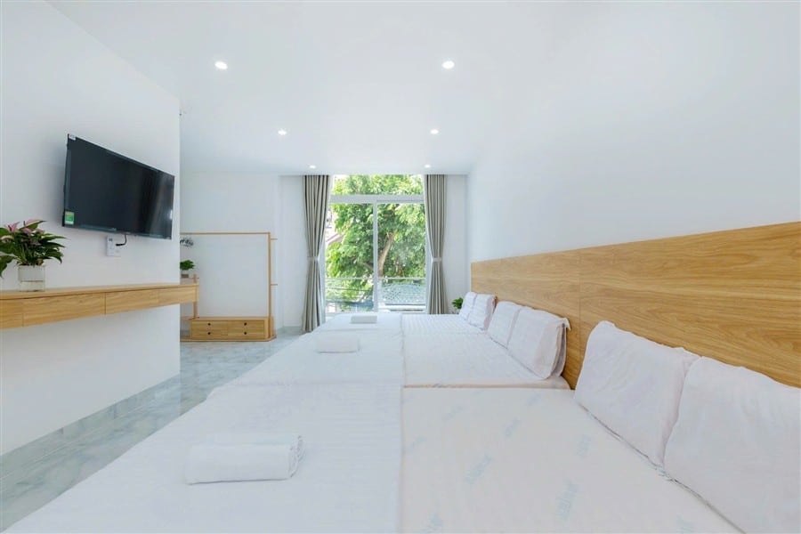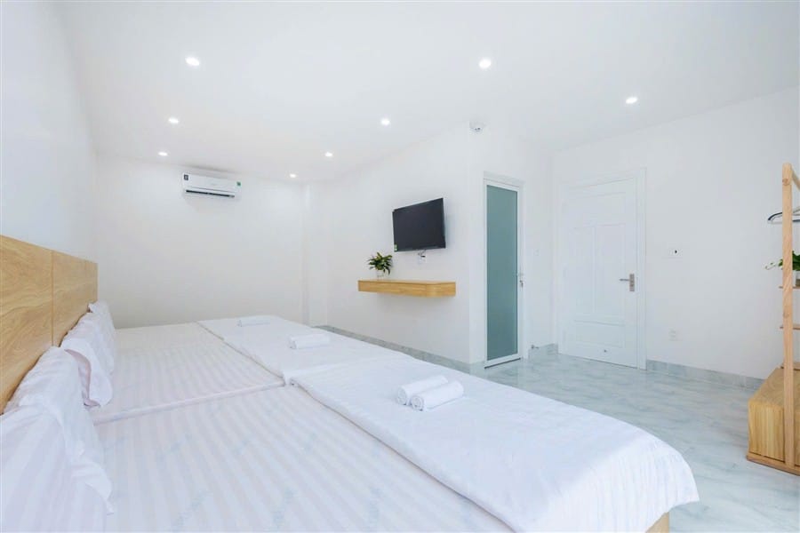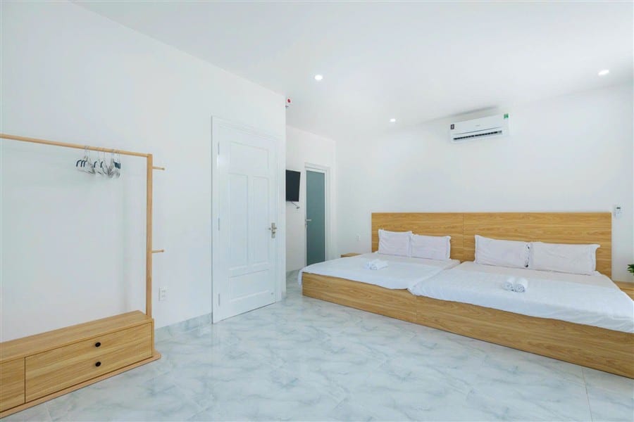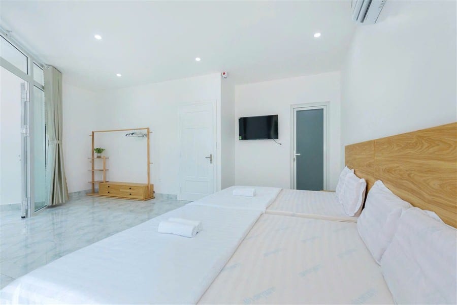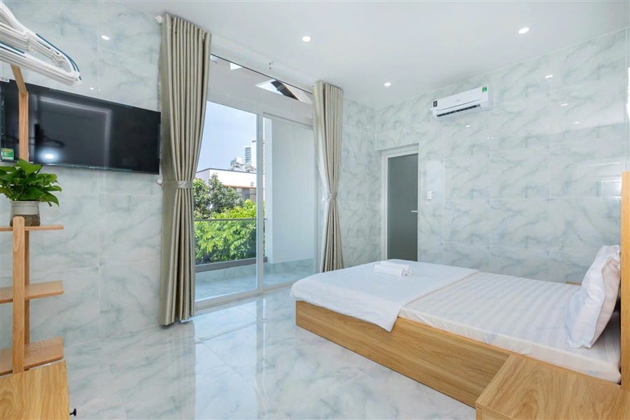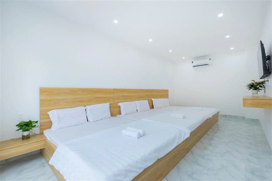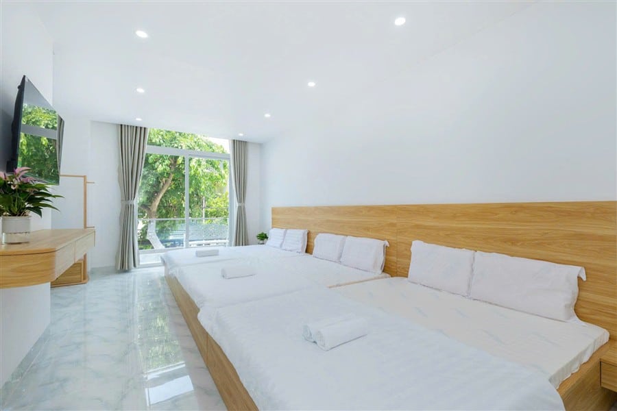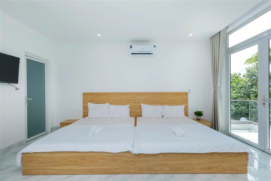 Phòng 3, 4, 5: Mỗi phòng 1 giường lớn, có máy lạnh, tủ đồ, TV, ban công thoáng mát