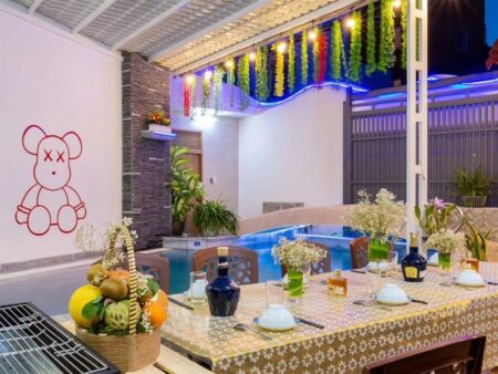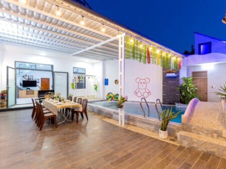 - Tiện nghi hiện đại: Hồ bơi rộng, dàn karaoke và máy game mang lại trải nghiệm giải trí phong phú cho khách.