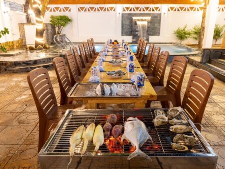 - Tiện nghi đa dạng: Hồ bơi 45m², karaoke, bàn bi da và máy game mang đến trải nghiệm giải trí phong phú và thú vị.