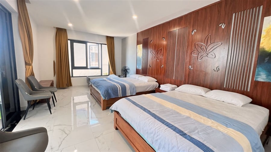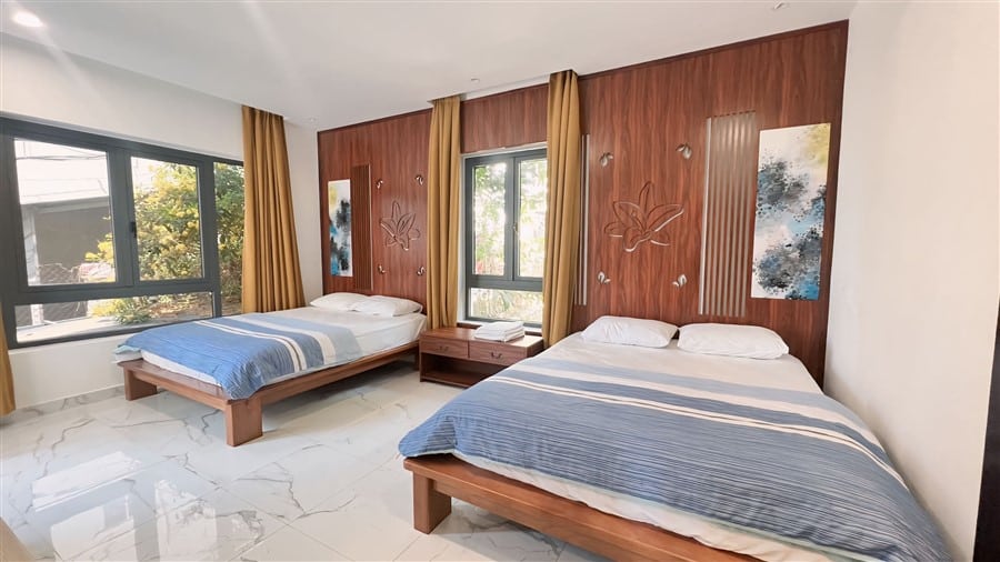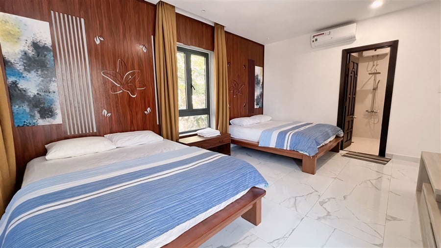 🛏 Phòng ngủ tiện nghi: Trang bị điều hòa, chăn nệm cao cấp, ánh sáng tự nhiên, mang đến giấc ngủ êm ái.
