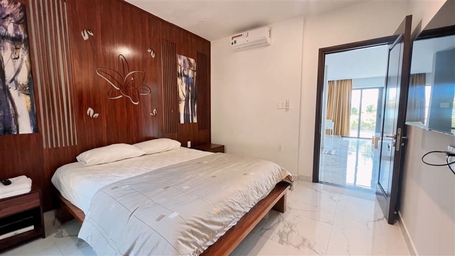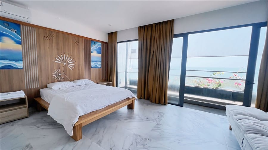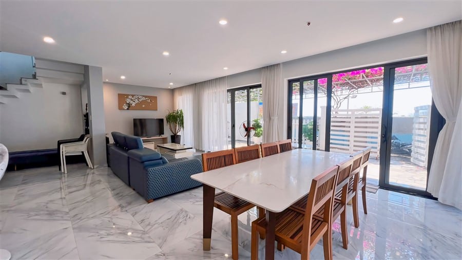 Với 6 phòng ngủ – 8 giường – 5 WC, villa có thể phục vụ tối đa 20 khách, lý tưởng cho gia đình lớn, nhóm bạn đông người hoặc đoàn khách du lịch nghỉ dưỡng cuối tuần.