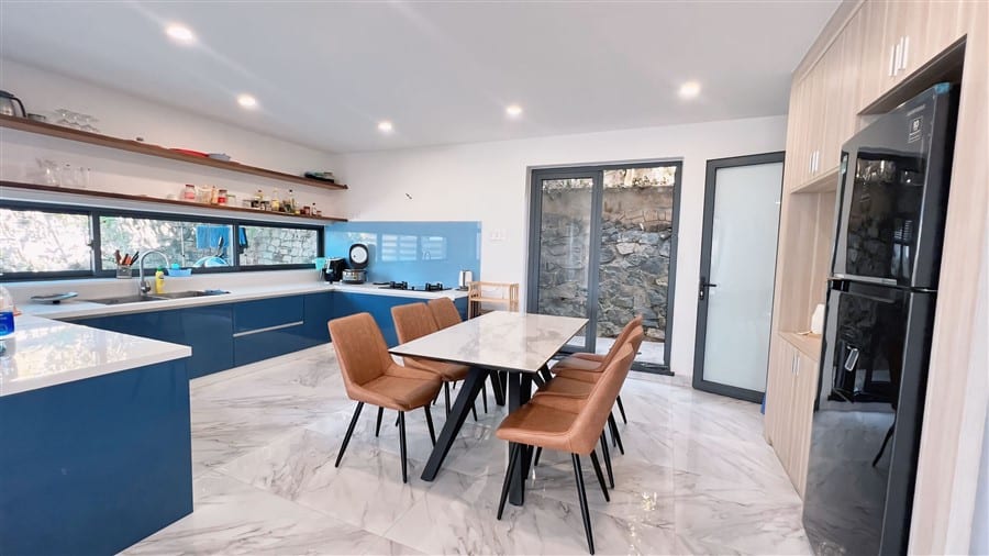 🍳 Bếp đầy đủ tiện nghi: Bếp ga, lò nướng BBQ, chén dĩa, dụng cụ nấu ăn sẵn sàng phục vụ mọi bữa tiệc gia đình.