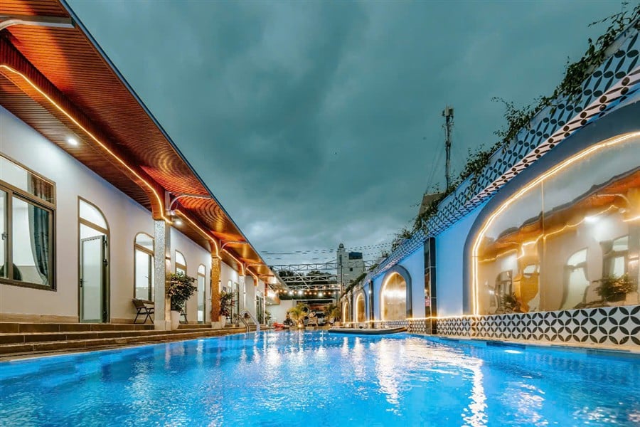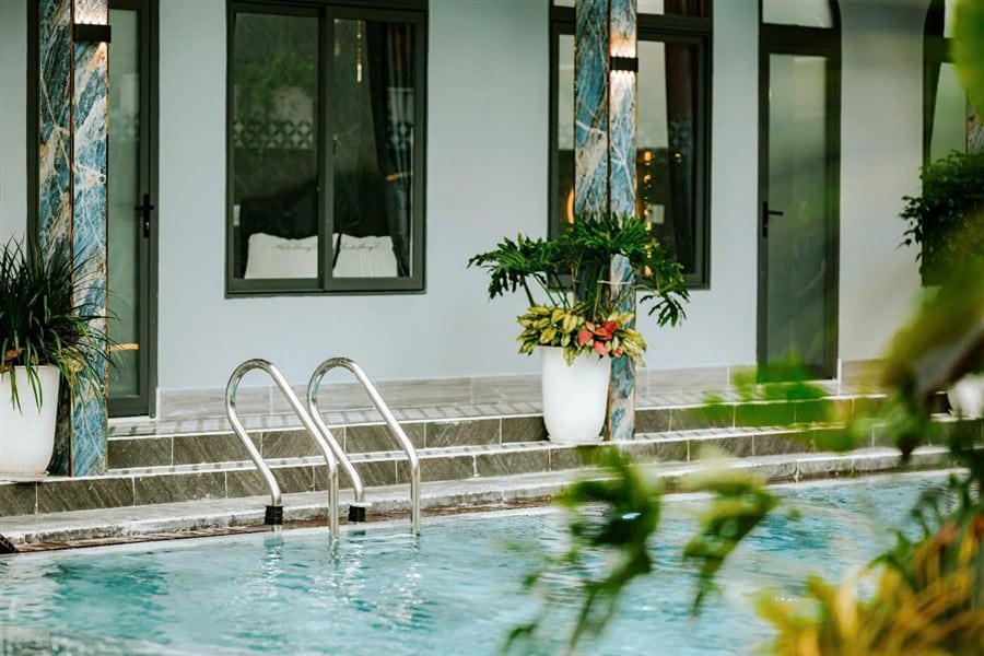 Sân trước và sân trong rộng rãi, đủ chỗ đậu 3 xe 45 chỗ, thuận tiện cho nhóm đông. Không gian hồ bơi, sân vườn, sân thượng và khu BBQ tạo điều kiện hoàn hảo cho các hoạt động vui chơi, tụ họp hoặc nghỉ dưỡng dài ngày.