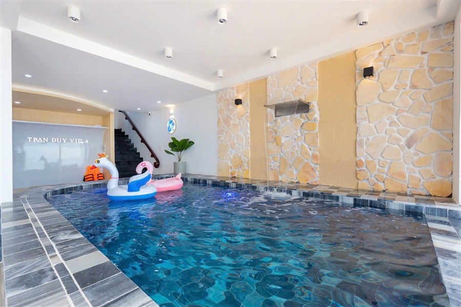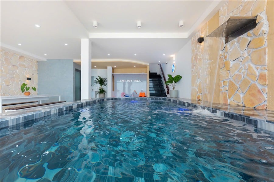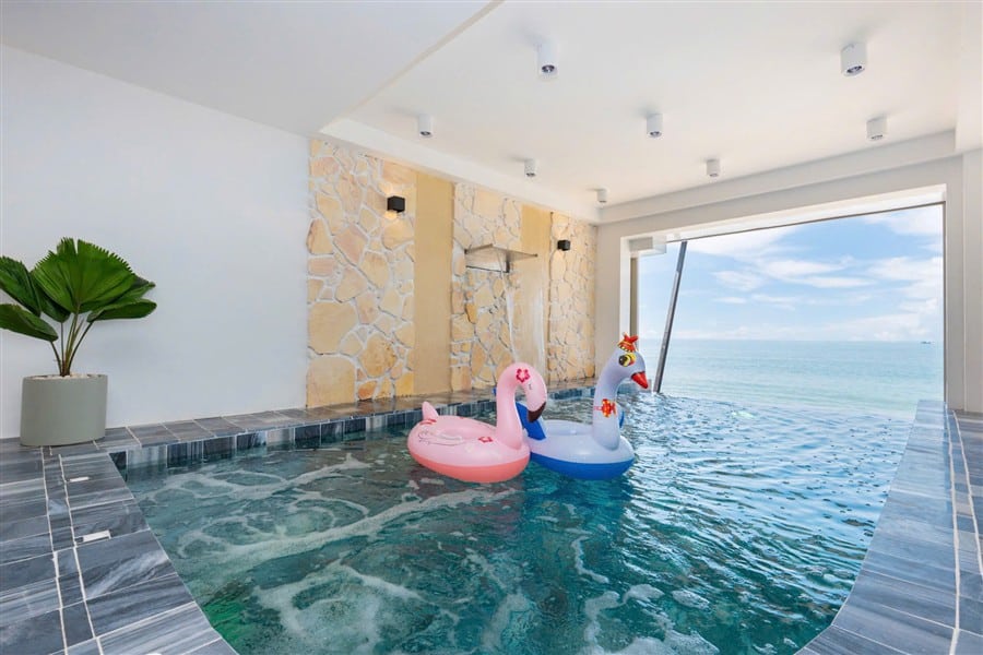 Thiết kế sang trọng, tiện nghi: hồ bơi vô cực và phòng karaoke đáp ứng nhu cầu giải trí.