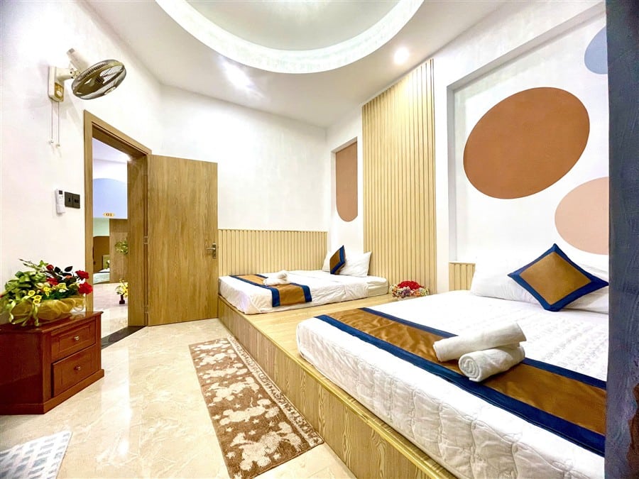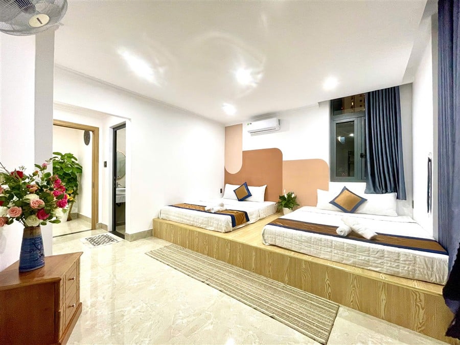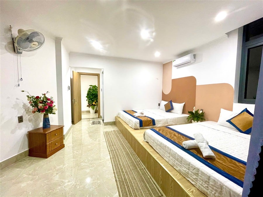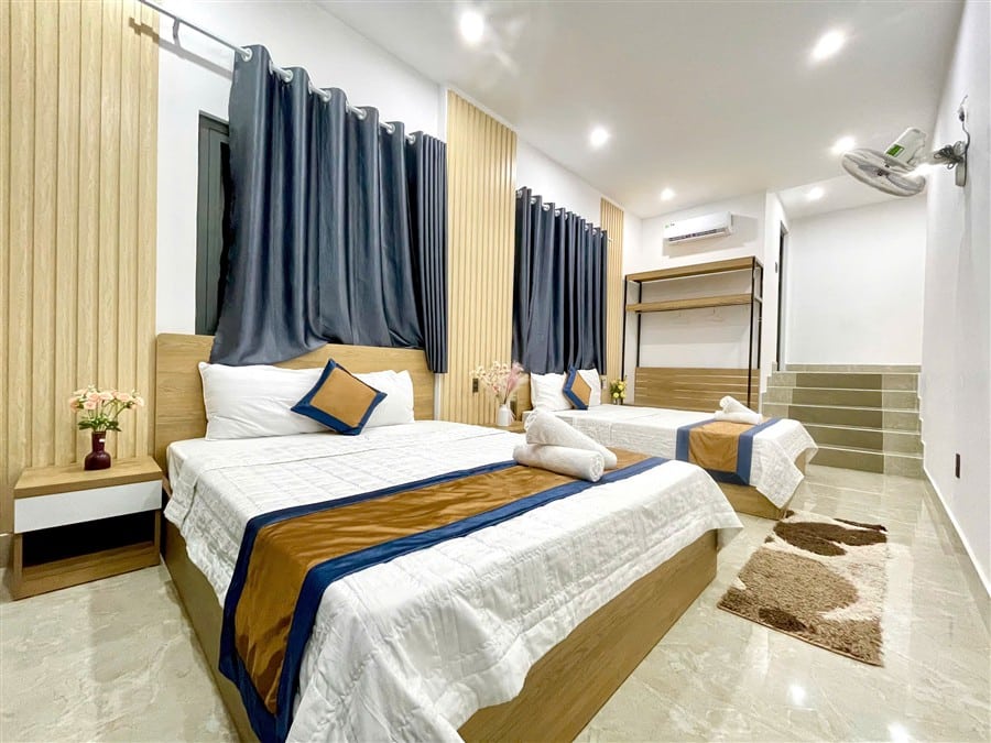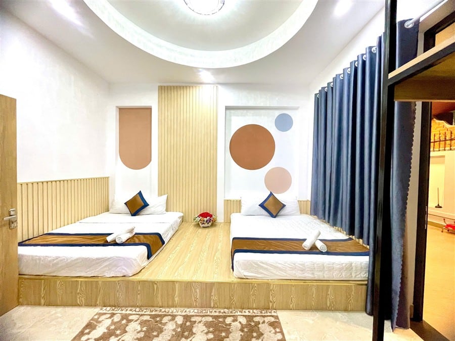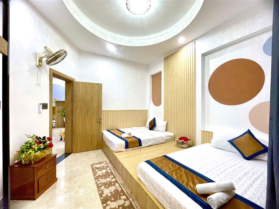 Tầng 1: 4 phòng 2 giường, mỗi phòng có WC riêng