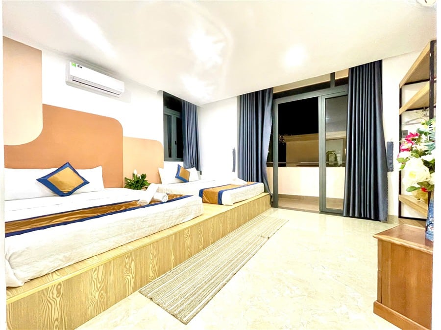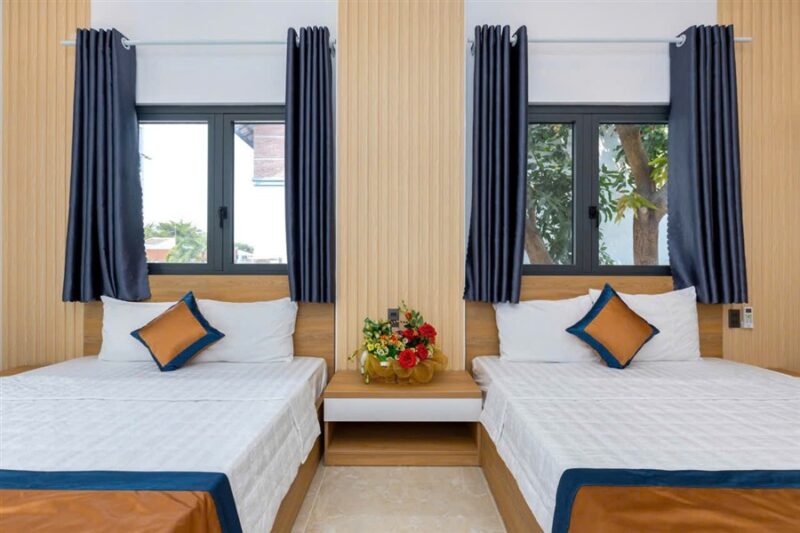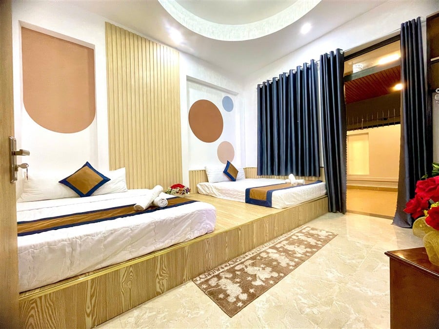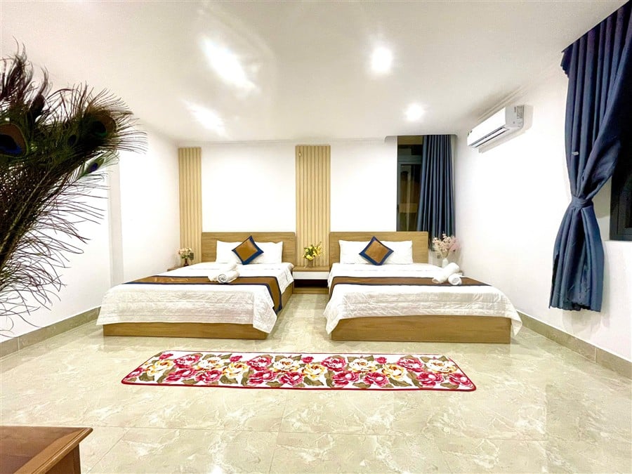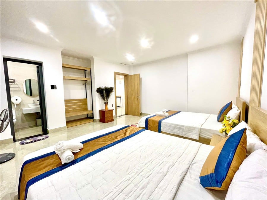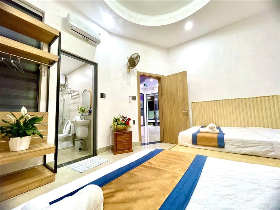 Tầng 1: 4 phòng 2 giường, mỗi phòng có WC riêng