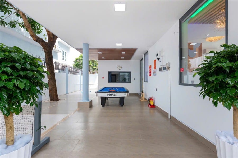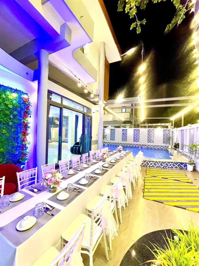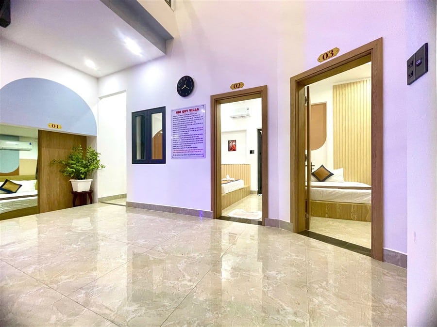 Villa có 8 phòng ngủ với 13 giường lớn, 9 phòng vệ sinh riêng, cùng 1 phòng phụ và 5 nệm dự phòng, sức chứa tối đa từ 40–50 khách. Hồ bơi rộng 150m² với sục massage, kết hợp khu vực dành cho trẻ em, tạo không gian thư giãn hoàn hảo. Sân Pickleball mini, bàn bida, phòng karaoke và phòng khách máy lạnh mang đến không gian giải trí trọn vẹn. Sân BBQ ngoài trời, bếp đầy đủ dụng cụ, lò nướng và bàn ghế ăn uống giúp tổ chức tiệc liên hoan, BBQ hoặc sinh hoạt nhóm dễ dàng.