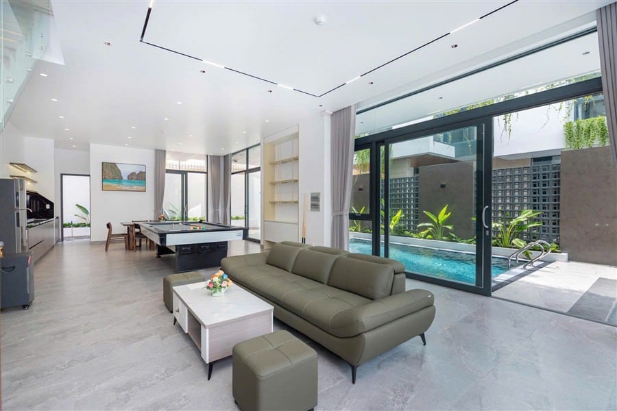 Villa mới xây, hiện đại, nội thất sang trọng, tiện nghi đầy đủ, phù hợp cho gia đình hoặc nhóm đông