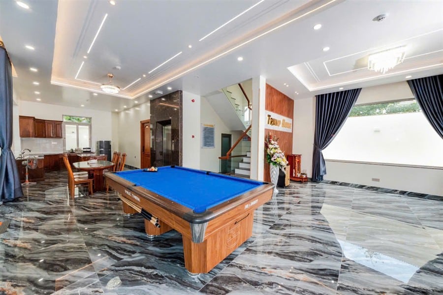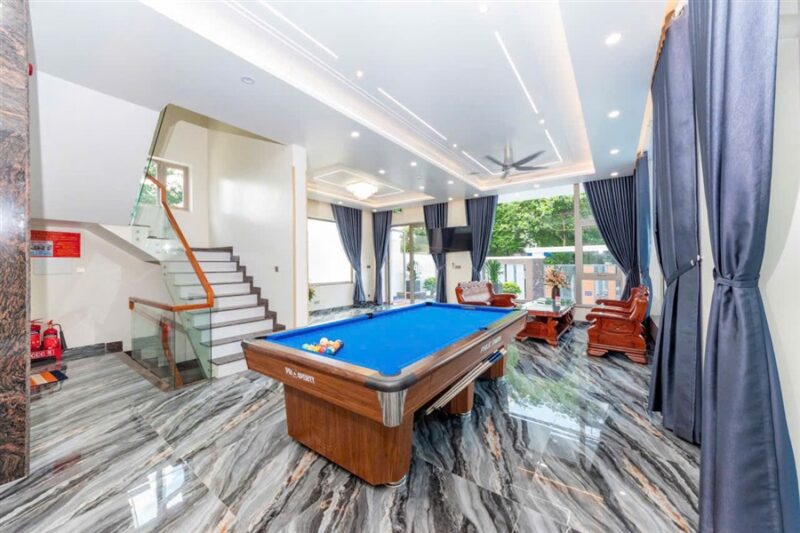 Với 10 phòng ngủ, 16 giường, hồ bơi riêng, bàn bida, sân BBQ rộng, nơi đây hoàn hảo cho đại gia đình, nhóm bạn đông hoặc công ty tổ chức tiệc – du lịch nghỉ dưỡng.