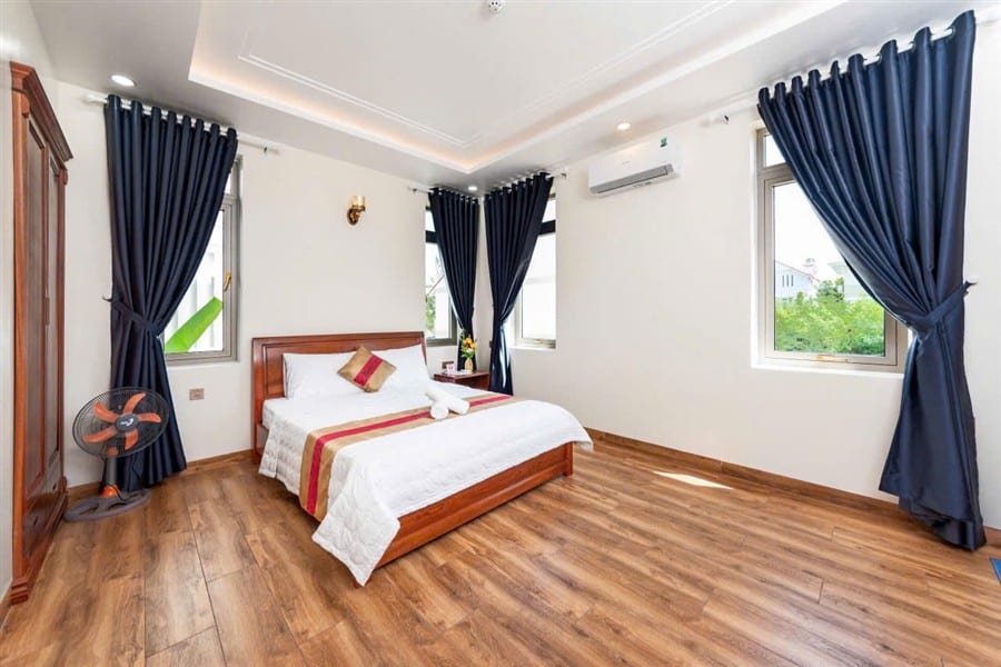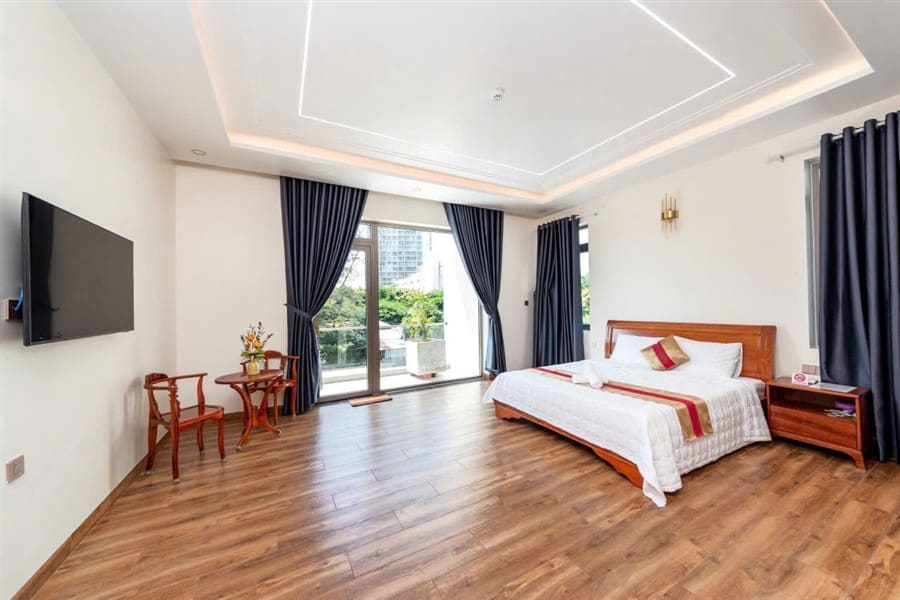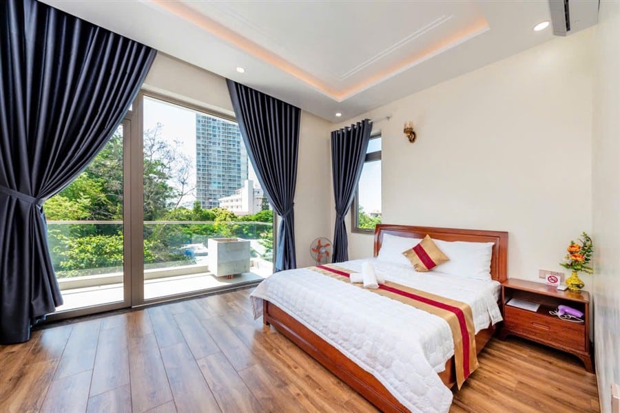 Mỗi phòng ngủ đều có máy lạnh, tivi, wifi mạnh, bàn làm việc, ban công và cửa sổ lớn.